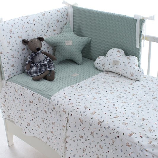 Todo el textil que necesites para la cuna de tu bebé, sábanas, mantas, edredones, chichoneras, saco nórdico, etc al mejor precio.