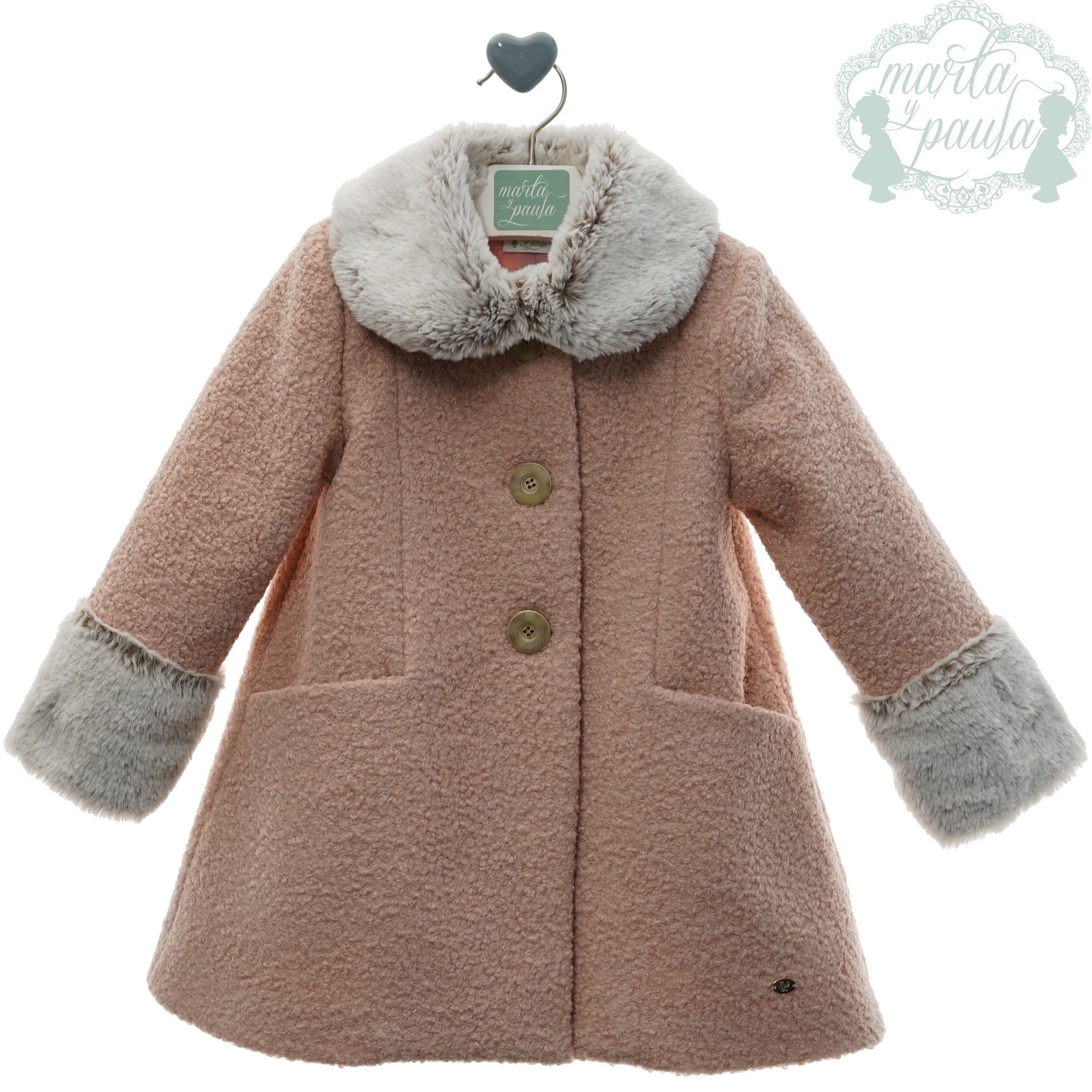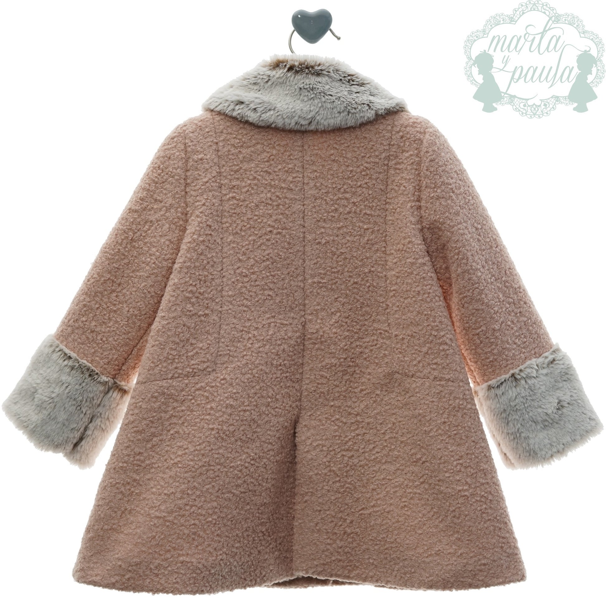 El Abrigo Infantil 4011 Marta y Paula forma parte de la exclusiva colección otoño-invierno, diseñado especialmente para proporcionar calidez y comodidad durante los meses más fríos. Está confeccionado en lana rizada de alta calidad, un material que ofrece aislamiento térmico eficaz y una textura suave al tacto, cuidando la delicada piel infantil. El cuello y los puños están acabados con pelito gris, aportando un extra de confort y estilo que combina funcionalidad y elegancia. Este abrigo es una prenda de fabricación española, garantizando un control riguroso de calidad y una confección impecable que asegura durabilidad y resistencia. Perfecto para proteger a los niños con un diseño atemporal y detalles pensados para su bienestar.