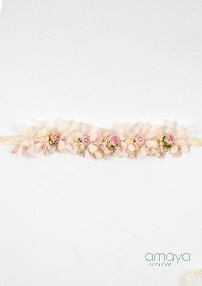 Adorno floral para la cintura a juego con el vestido de Amaya, es perfecto tanto para ceremonia como para Comunión.