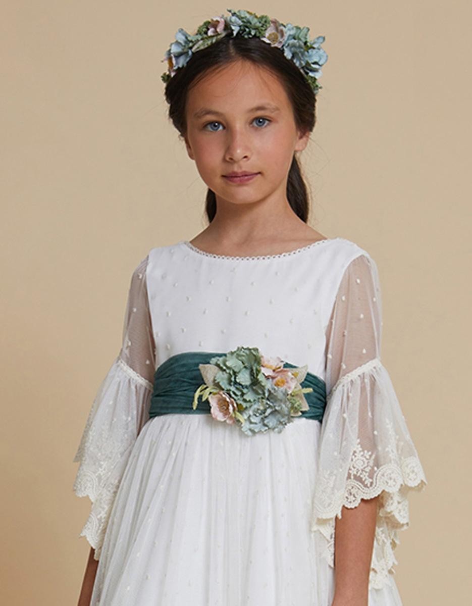 Adorno floral para la cintura a juego con el vestido de Amaya, es perfecto tanto para ceremonia como para Comunión.