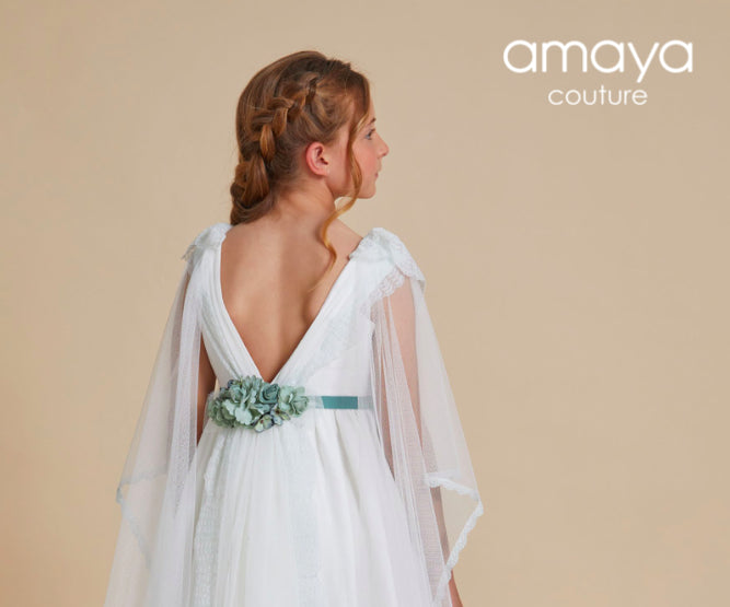 Adorno floral para la cintura a juego con el vestido de Amaya, es perfecto tanto para ceremonia como para Comunión.