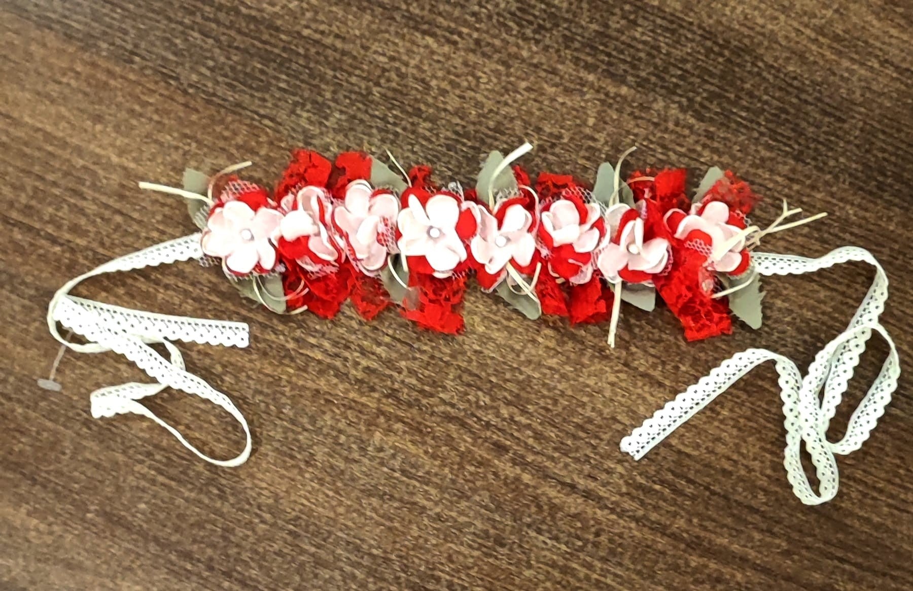 Adorno para la cintura en tonos rojos ideal para combinar con vestidos de comunión o ceremonias.