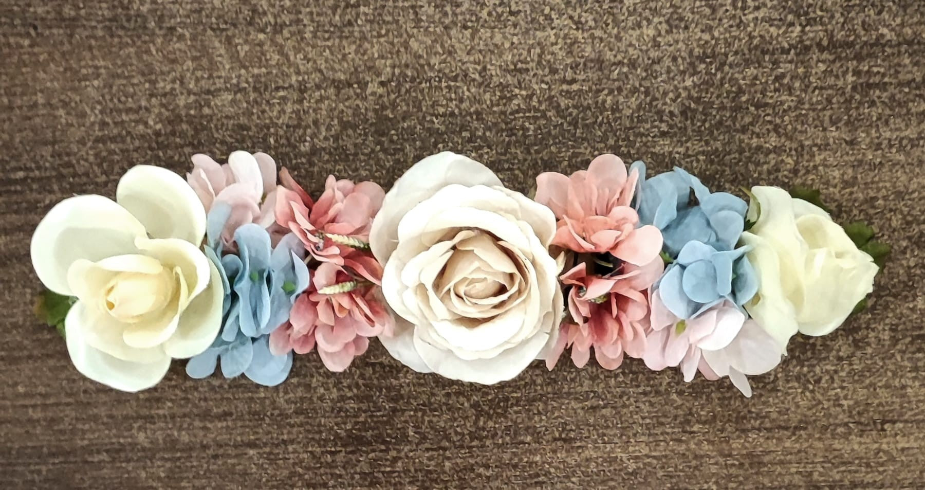El adorno floral de la cintura compuesto de flores hechas a mano.