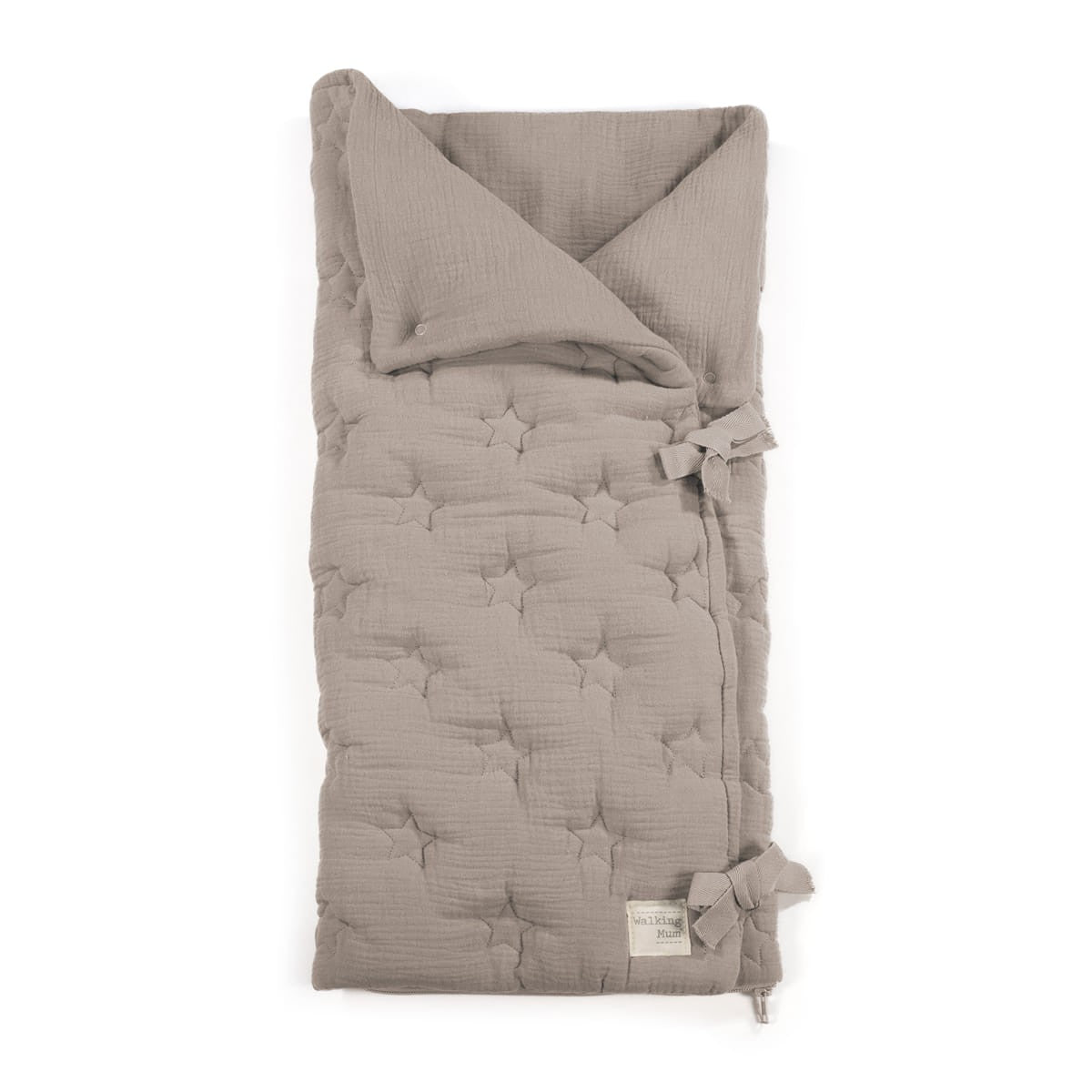 Saco arrullo o saco manta Caetana Stone con estrellas bordadas verde. Está fabricado con una suave muselina 100% algodón. Ideal para los primeros dias del bebé. Es perfecto para los primeros paseos en el capazo. Se convierte en una manta para la cuna. Practico cierre tipo sobre con velcros y cierre con cremallera en la parte inferior en los pies para que el bebé esté abrigado. Gran calidad y mucho estilo. Fabricado en materiales resistentes y de fácil limpieza a mano o a máquina a 30 °C.