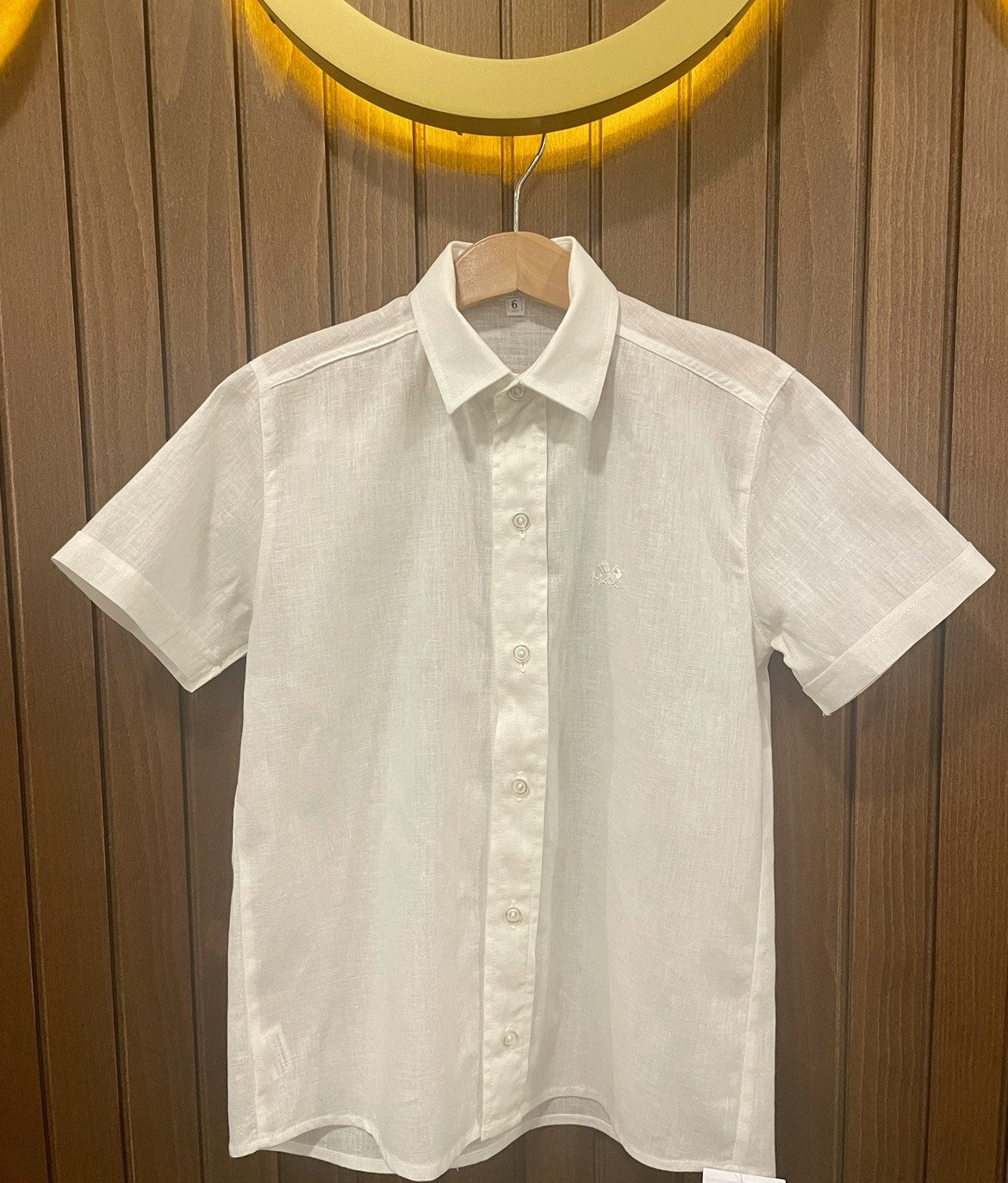 Confeccionado en lino. Cuello camisero ideal para utilizar con corbata o pajarita.