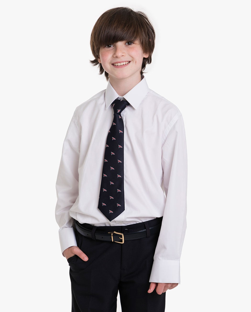 Camisa de vestir, tejido diagonal en color blanco con cuello pico, ideal para usar corbata o pajarita.