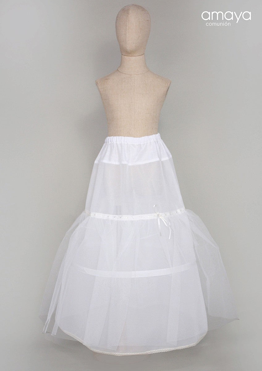 El can can Comunión modelo Can-Can Volante Tul y Pasacintas de Amaya está diseñado para aportar un volumen elegante y natural a los vestidos de comunión. Gracias a sus dos aros ajustables, permite adaptarse al estilo y comodidad deseados, asegurando un soporte óptimo que realza la silueta del vestido. Fabricado en España con materiales de calidad, este complemento ofrece una excelente durabilidad y acabado profesional, convirtiéndose en un aliado perfecto para lograr una apariencia impecable en un día tan especial. Fácil de colocar y remover, es ideal para acompañar cualquier diseño de vestido de comunión.