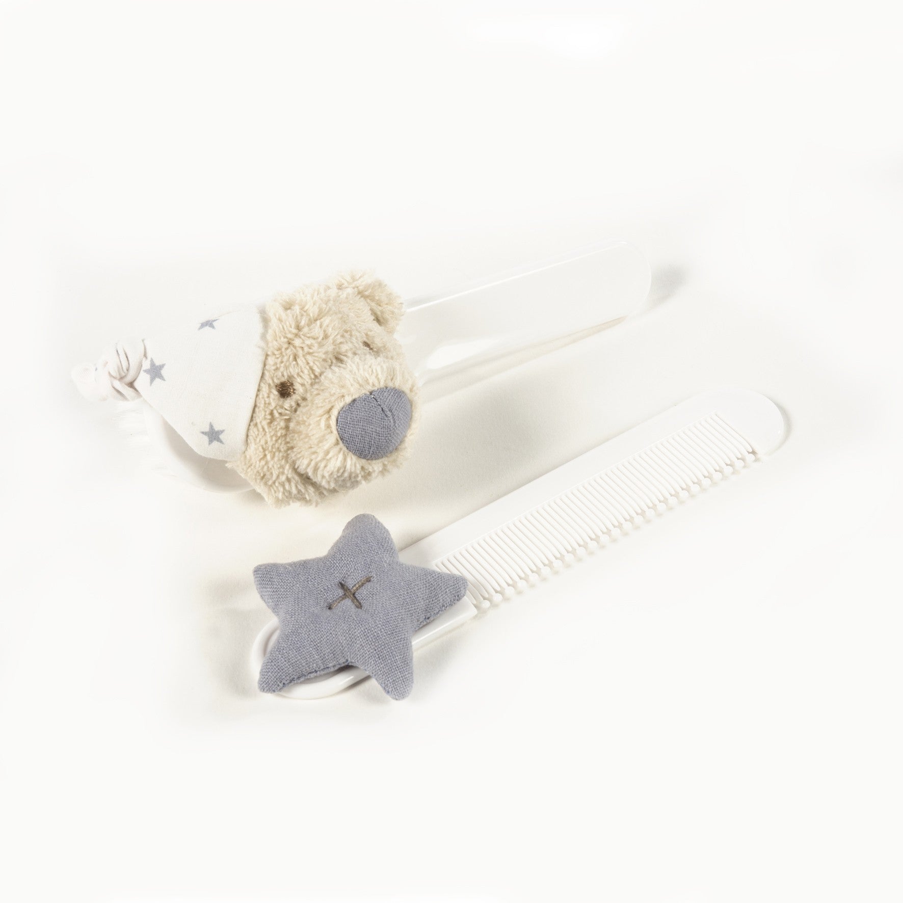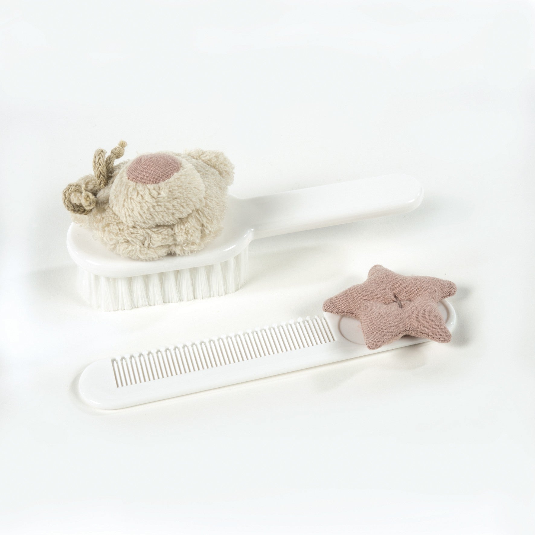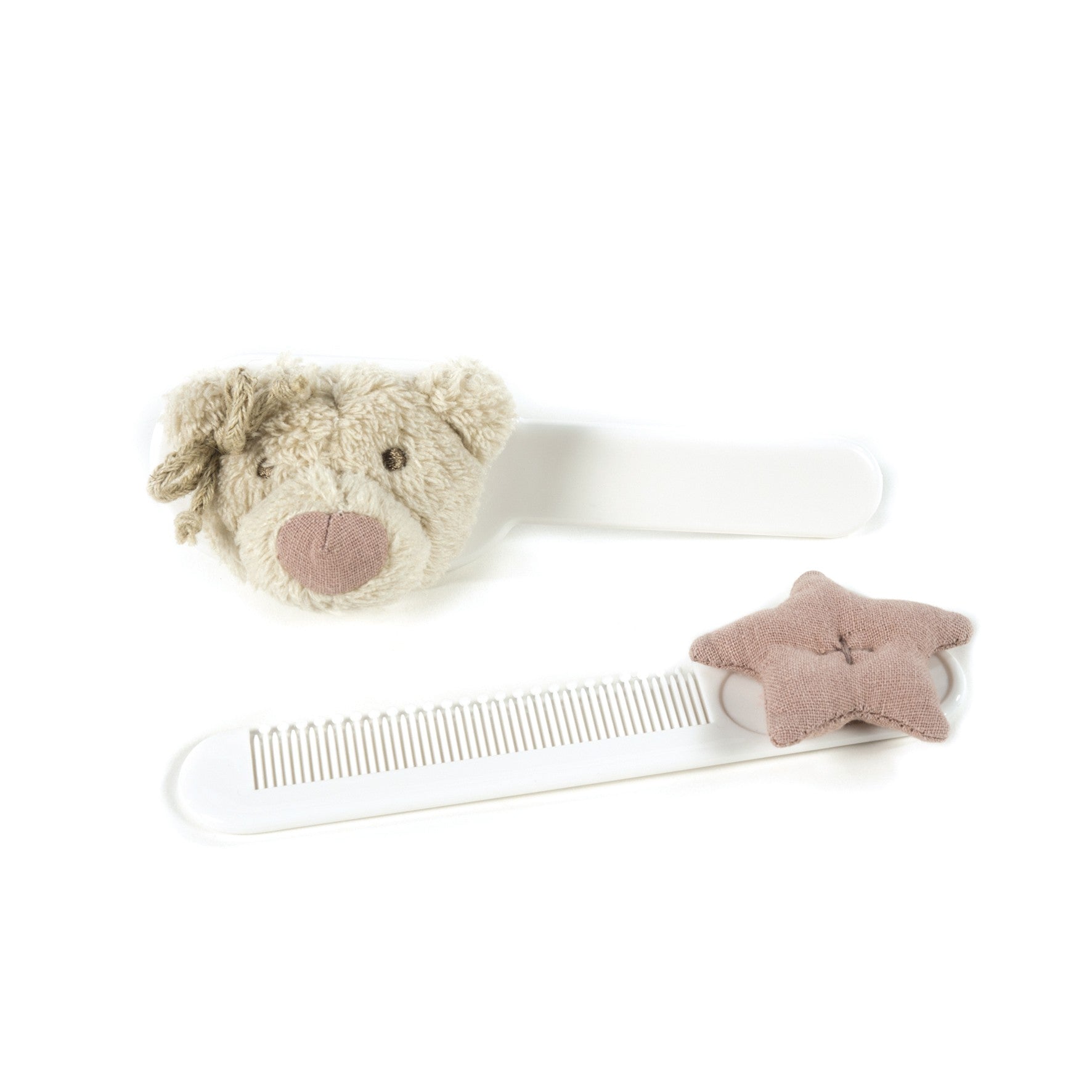 Este set de cepillo y peine de la colección Amelie de Pasito a Pasito está especialmente diseñado para el cuidado delicado del cabello de tu bebé. Con una encantadora decoración de oso y estrella rosa, combina funcionalidad y estética. Las fibras del cepillo son suaves y flexibles, lo que garantiza un peinado delicado sin dañar el cuero cabelludo ni el cabello fino del bebé. El peine ofrece un peinado suave y facilita el manejo del cabello mientras previene tirones o molestias. Este conjunto es ideal para crear un momento de cuidado afectuoso y seguro desde los primeros días.