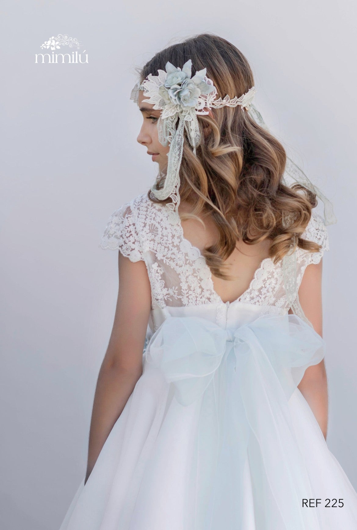 La flor que lleva en la cintura se puede reducir de tamaño o retirar si se desea.