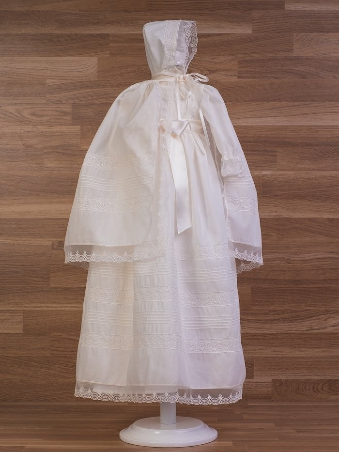 Batón de cristianar organdí jaretas con capa y capota de Mikamama