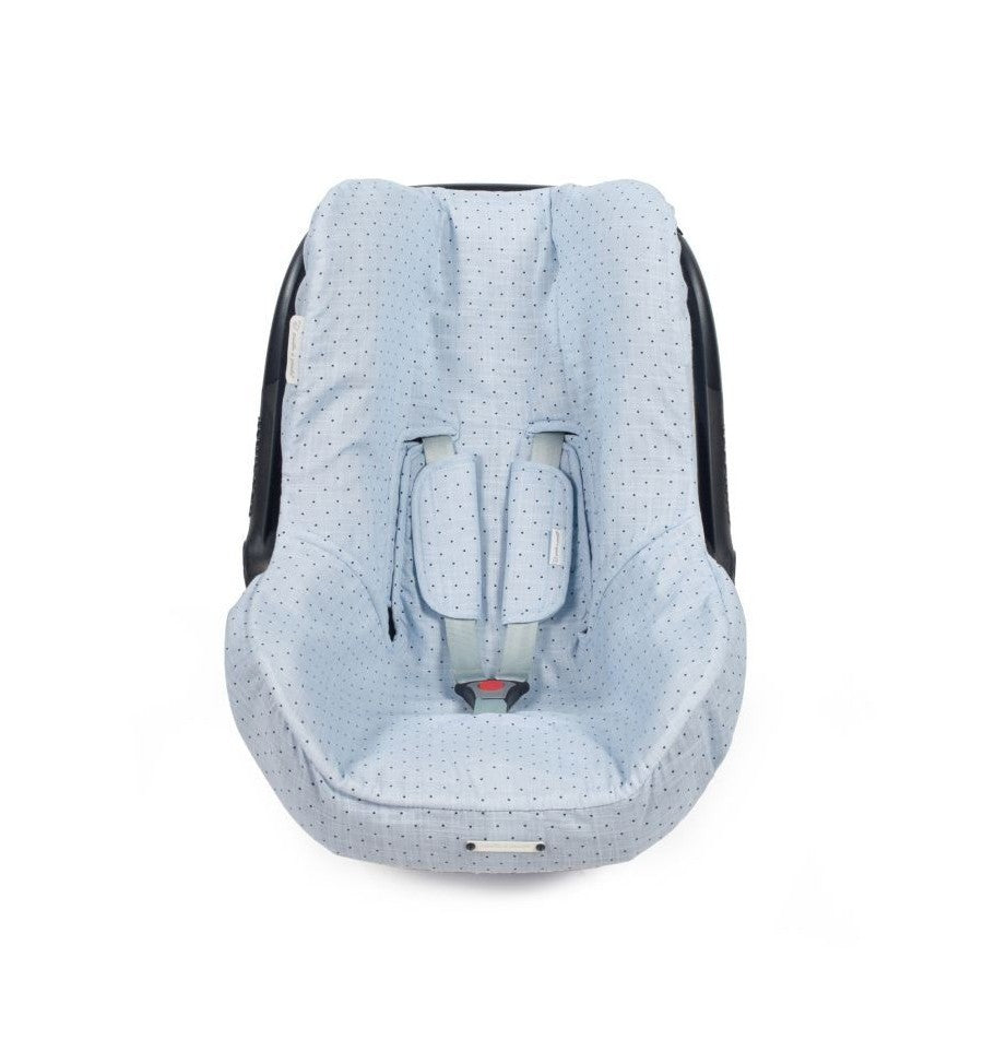 Realizado en algodón muy transpirable y fresco. Trasera con tejido 3d panal de abeja que crea una capa de aire entre el bebé y la silla para evitar que el niño sude.
