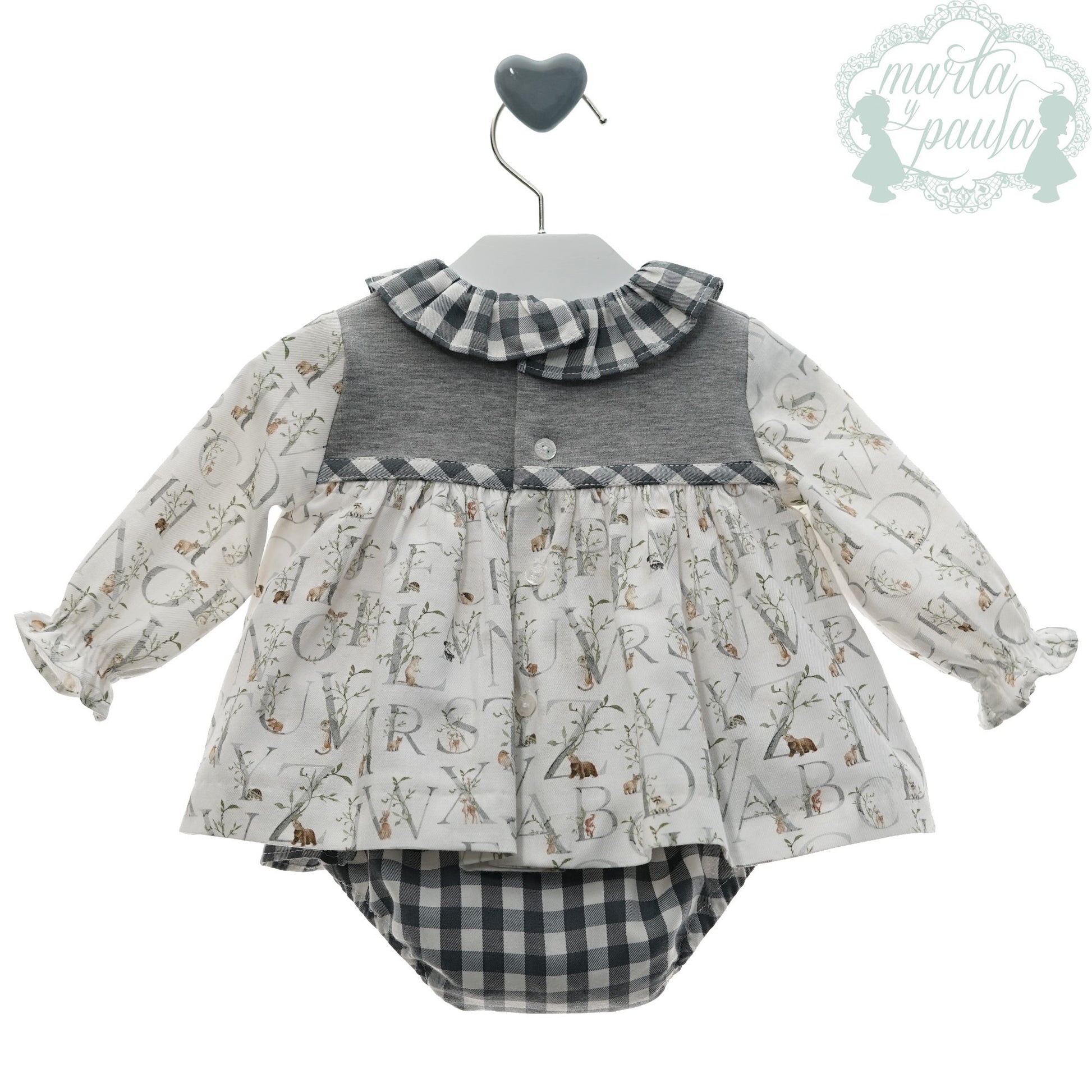 Bonito vestido estampado con braguita a cuadros a juego con el cuello.