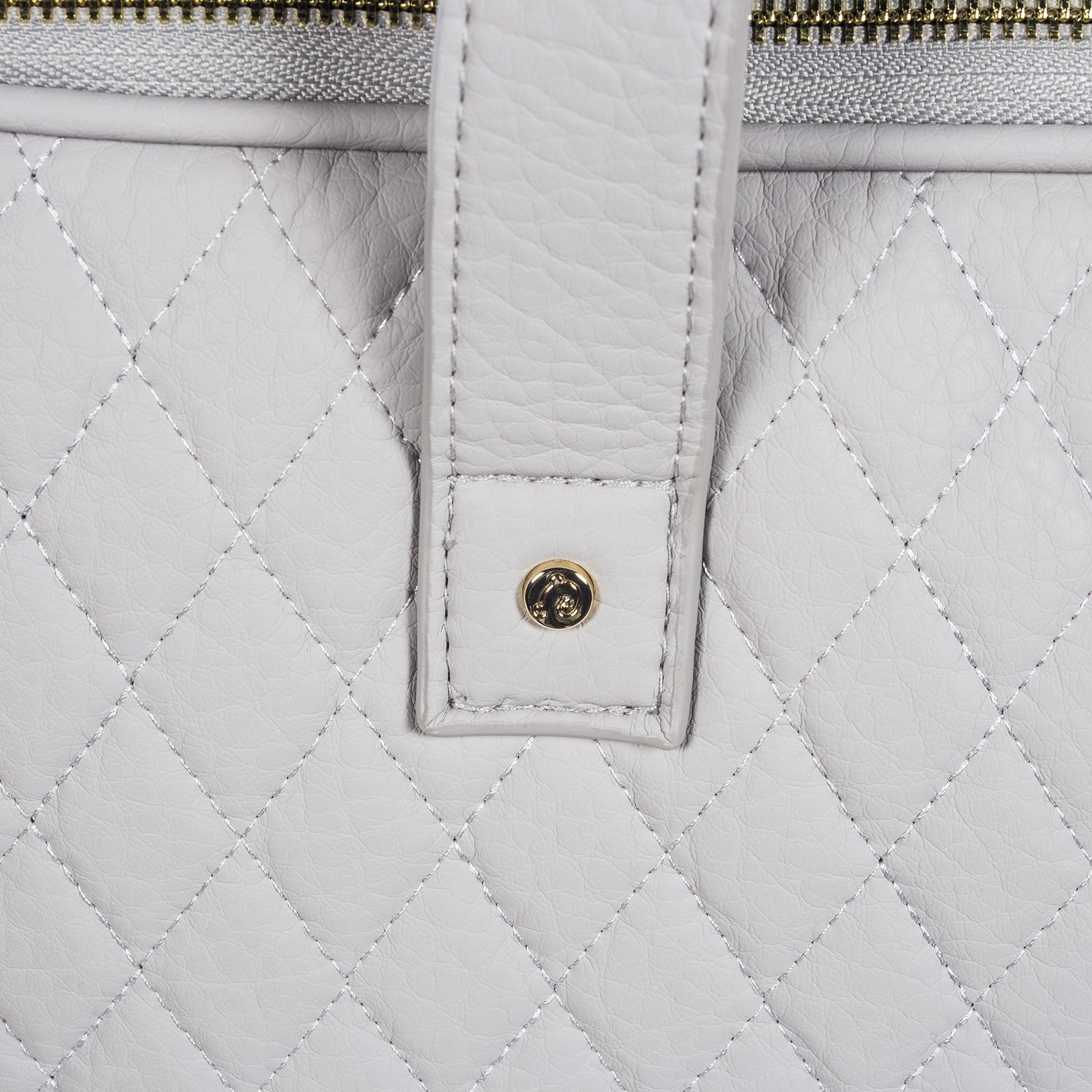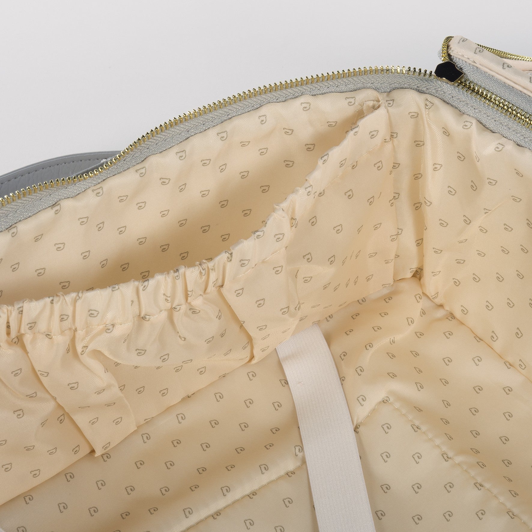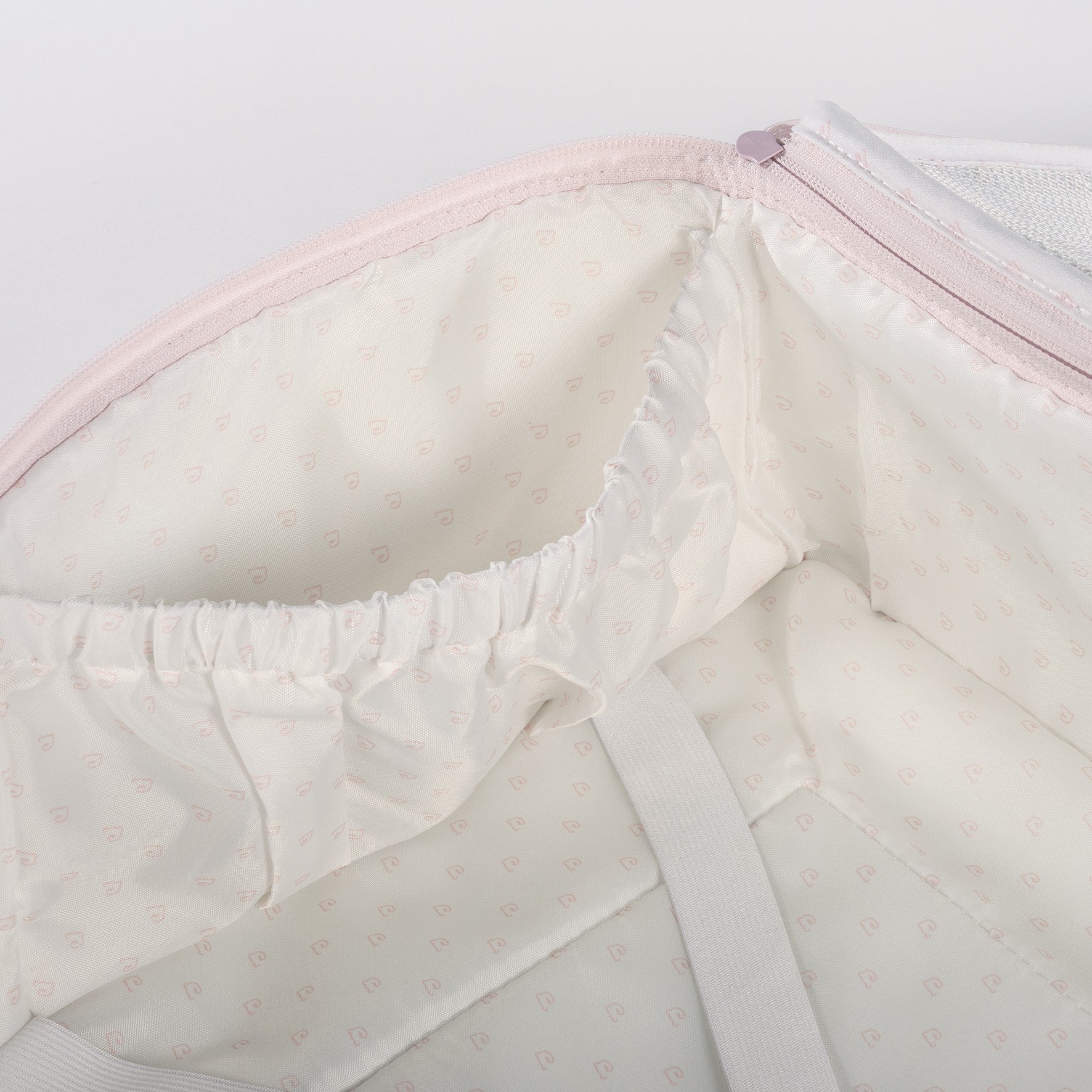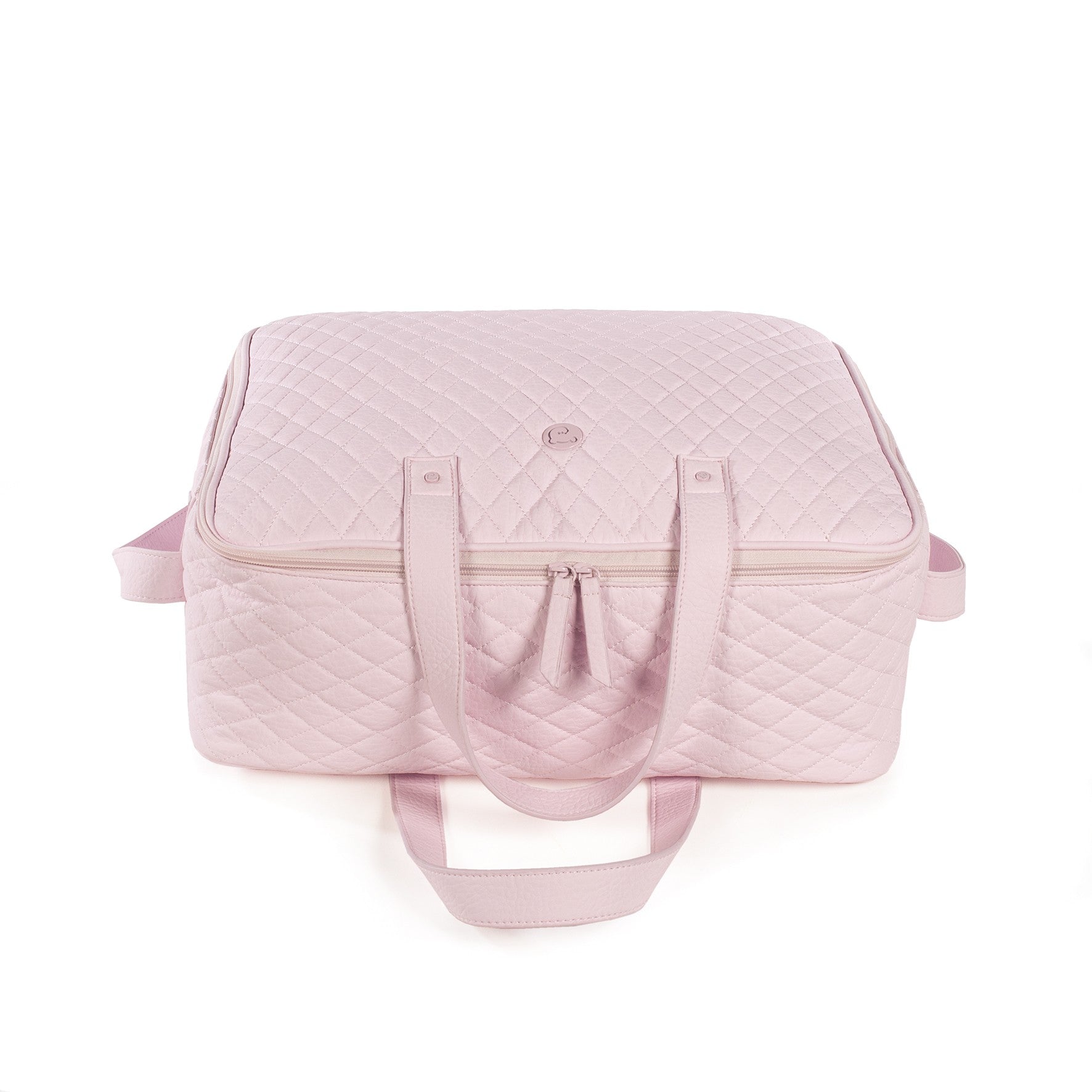 Gracias a su tamaño rectangular y práctica apertura, tendrás cubiertas todas tus necesidades. Lleva asa larga para colgar en el hombro. Forro interior con gomas para sujetar la ropita y bolsillos.