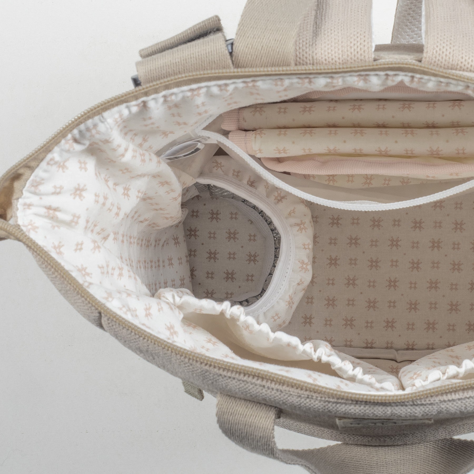 Tiene bolsillos para guardar los biberones y mantenerlos seguros, bolsillos para colocar cubiertos, para las toallitas húmedas, también tiene un funda para la botella de agua y otros más. Incluye un cambiador a juego con el bolso de maternidad y un bolsillo plastificado para almacenar la ropa mojada y aislar la humedad del resto de la mochila. El bolso incluye 2 asas cortas ajustables que facilitan la colocación en cualquier modelo de silla de paseo, asas de mano y correas acolchadas para colgar en los hombros hacia la espalda, sin generar molestias por el peso. Gran calidad y mucho estilo. Fabricada en un material resistente y de fácil limpieza.