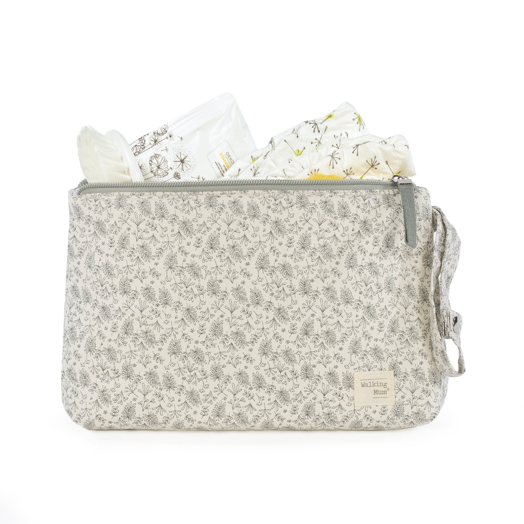 El neceser de bebé Gala con estampado floral es un bolso especialmente pensado para llevar todos los productos de aseo de nuestra niña o niño al salir de casa. Es un modelo con mucho estilo para adecuarse a lo que necesitas. Su diseño simple y cómodo de forma rectangular ofrece comodidad para transportar todos los artículos de aseo de tu bebé que por ser tan pequeños a veces se pierden dentro del bolso canastilla y aquí puedes tenerlos todos ordenados y siempre a mano. Tiene un cierre seguro de cremallera para evitar que algo pueda salirse. Gran calidad y mucho estilo. De fácil limpieza a mano o a máquina a 30 °C. Walking Mum protege a tu bebé utilizando los mejores tejidos, libres de colorantes azoicos y sustancias nocivas para la salud. Nuestra colección Walking Mum está diseñada con un particular sello de estilo urbano y moderno que no pasa desapercibido, para vestir diferente los paseos con tu bebé. Los accesorios de esta línea son más sport y prácticos, especialmente pensadas en mamás modernas que aprecian los diseños más actuales y en tendencia sin dejar de lado la calidad y la funcionalidad de complementos que hacen más cómodos todos los paseos con sus bebés. Especificaciones: Materiales: 100% algodón. Medidas: 26x18x2 cm.