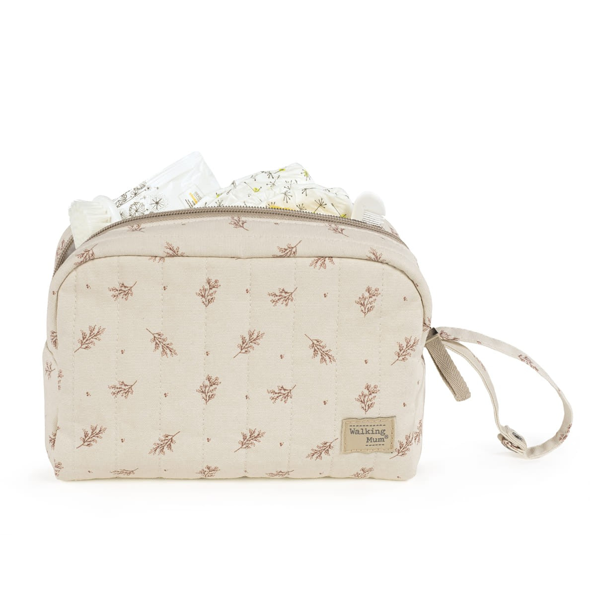 El neceser de bebé Mimosa con estampado floral es un bolso especialmente pensado para llevar todos los productos de aseo de nuestra niña o niño al salir de casa.