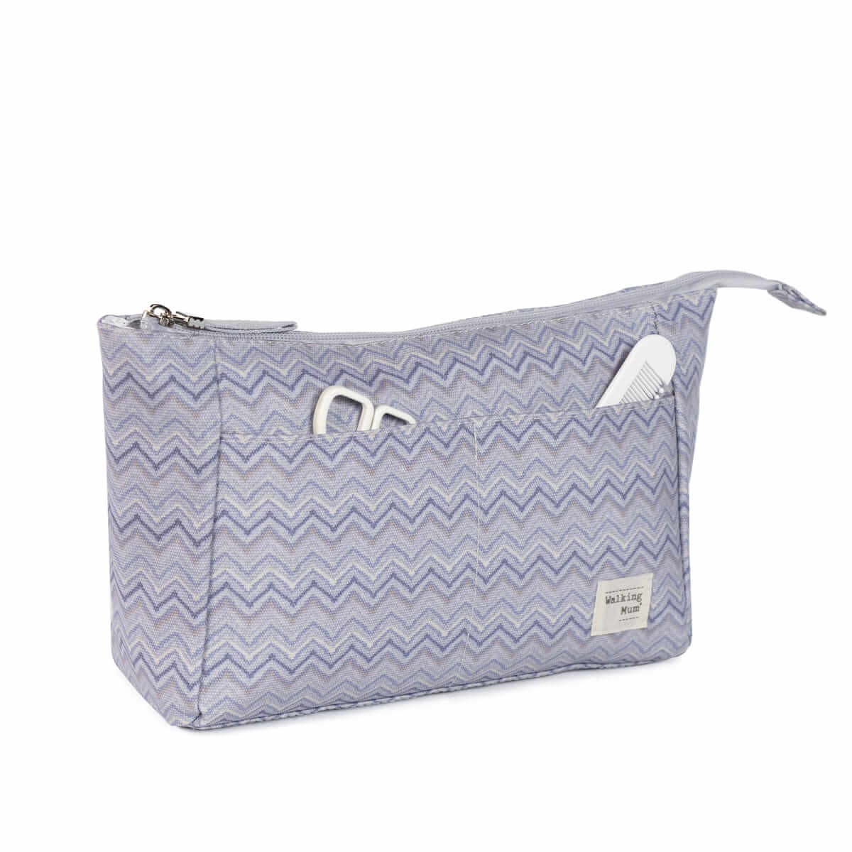 El neceser de bebé Zigzag con estampado geométrico en tonos azules es un bolso especialmente pensado para llevar todos los productos de aseo de nuestra niña o niño al salir de casa. Es un modelo diferente y moderno con mucho estilo para adecuarse a lo que necesitas.