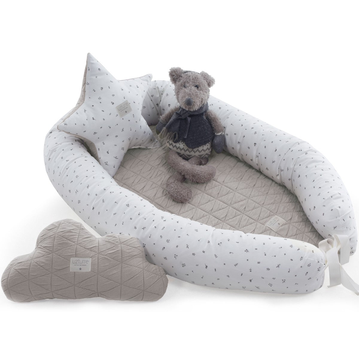 Se puede utilizar como reductor en la cuna, como lugar seguro para jugar en el suelo junto al bebé o en una cuna de viaje.