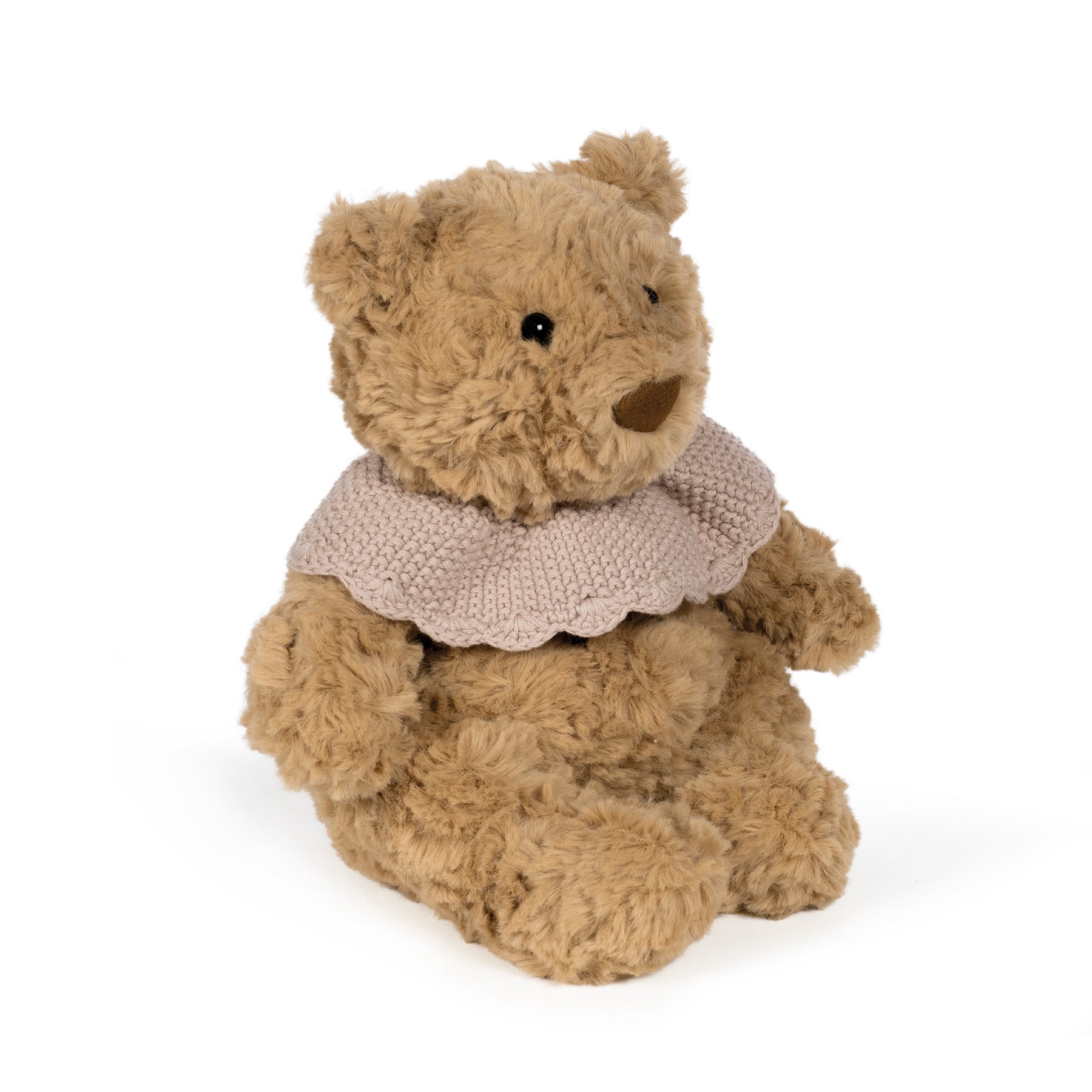 Oso Peluche Tricot de Pasito a Pasito, un imprescindible para tu bebé. No te pierdas este adorable osito de peluche de la colección Tricot. Suave, achuchable y con un diseño encantador gracias a su cuello de tricot. Con 29 cm de tamaño, es ideal para recién nacidos (+0 meses). Favorece el desarrollo emocional y sensorial del bebé. Este oso de peluche de Pasito a Pasito es el compañero ideal para momentos de juego y descanso, aportando calma y dulzura al bebé. Limpieza a mano o a máquina a 30 °C. Pasito a pasito protege a tu bebé utilizando los mejores tejidos, libres de colorantes azoicos y sustancias nocivas para la salud. Cumple con la normativa europea EN-71 Seguridad de los juguetes +0 años.