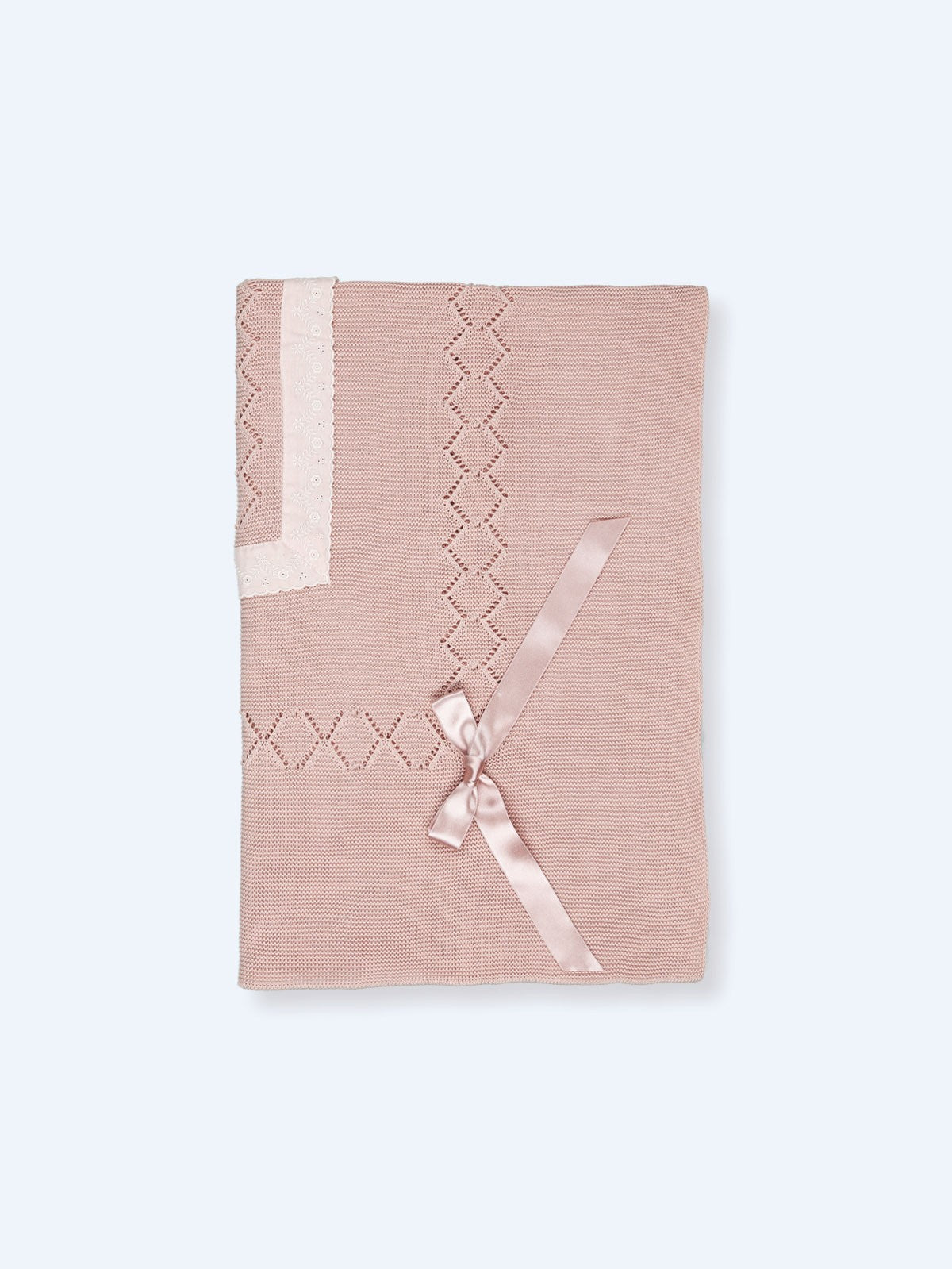 Mantita en punto ideal en perlé para los meses más calidos. Decorada con tira bordada.