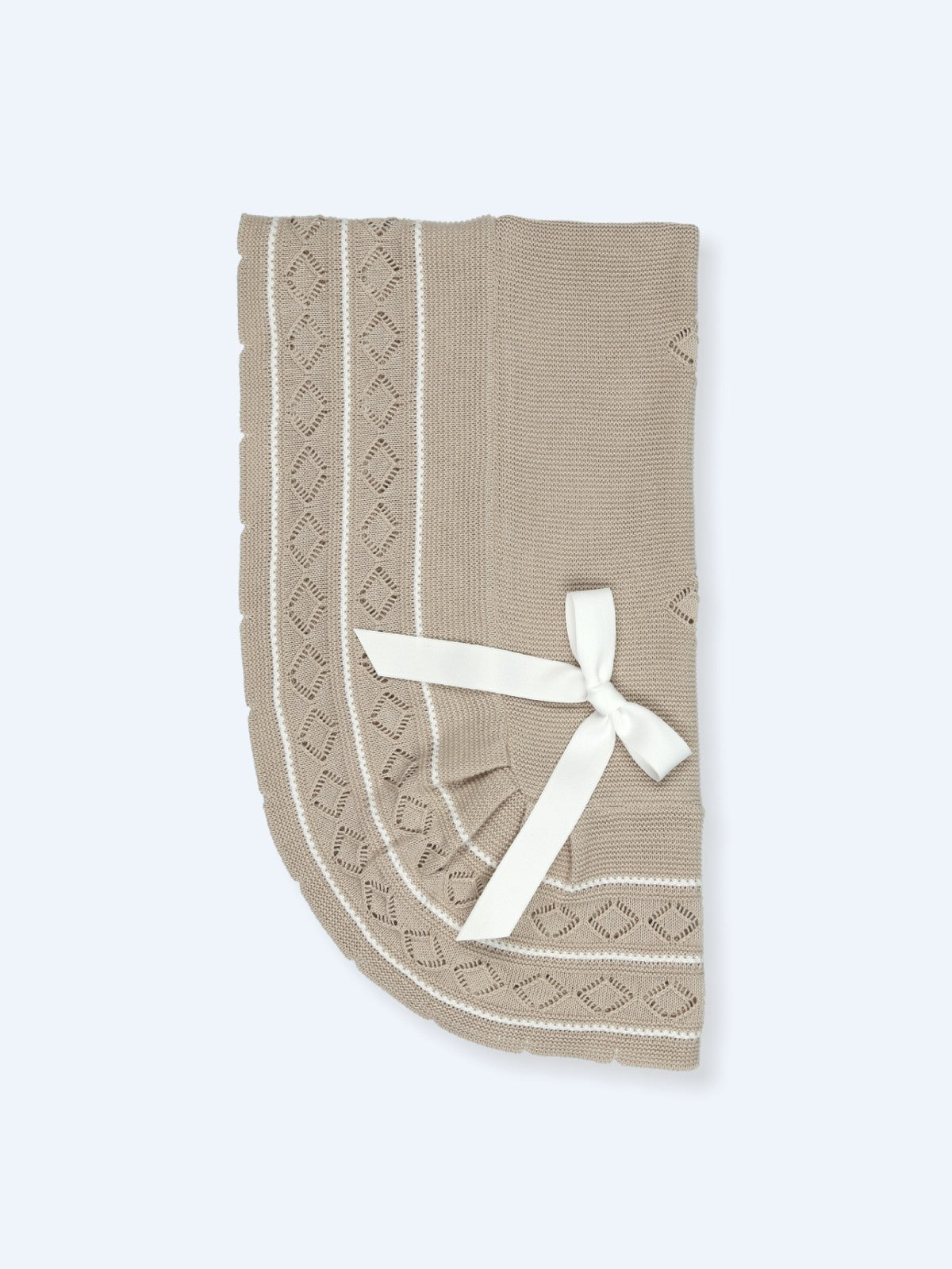 Mantita en punto ideal en perlé para los meses más calidos. Decorada con tira bordada.