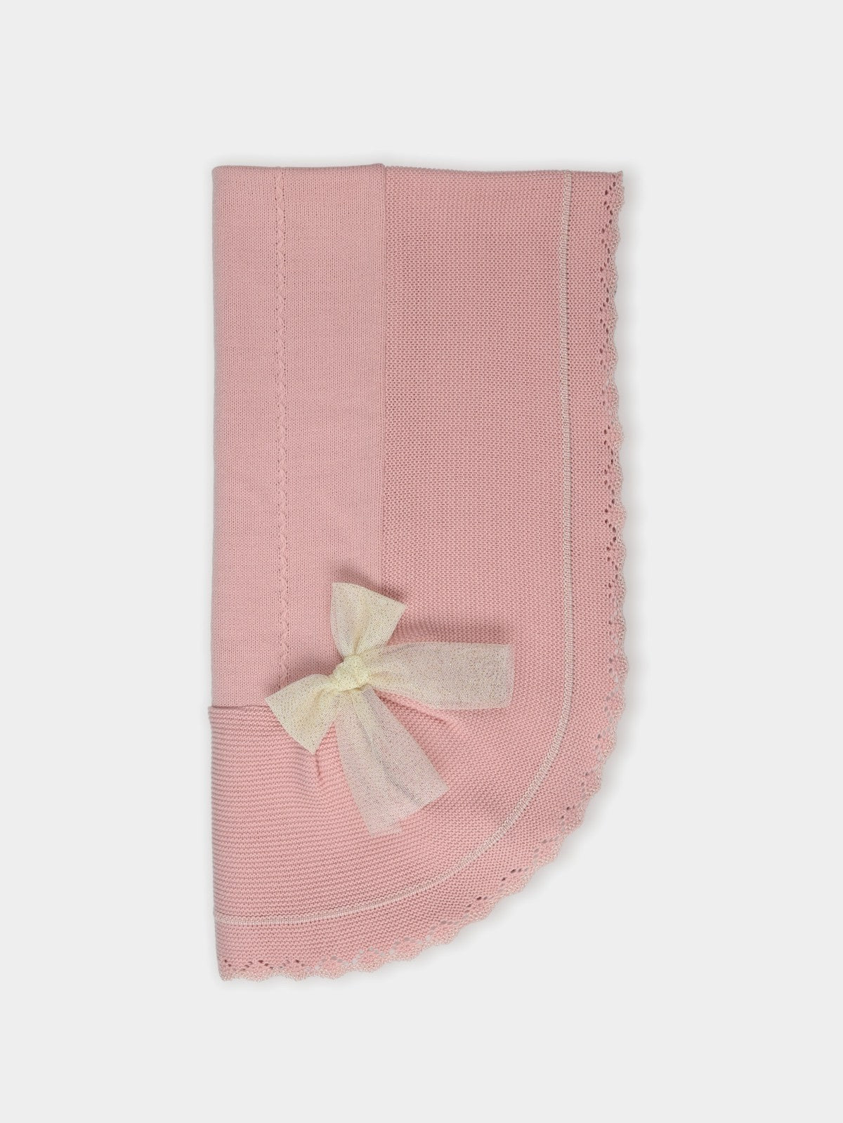 Mantita en punto ideal para los meses más fríos. Decorada con lazo.