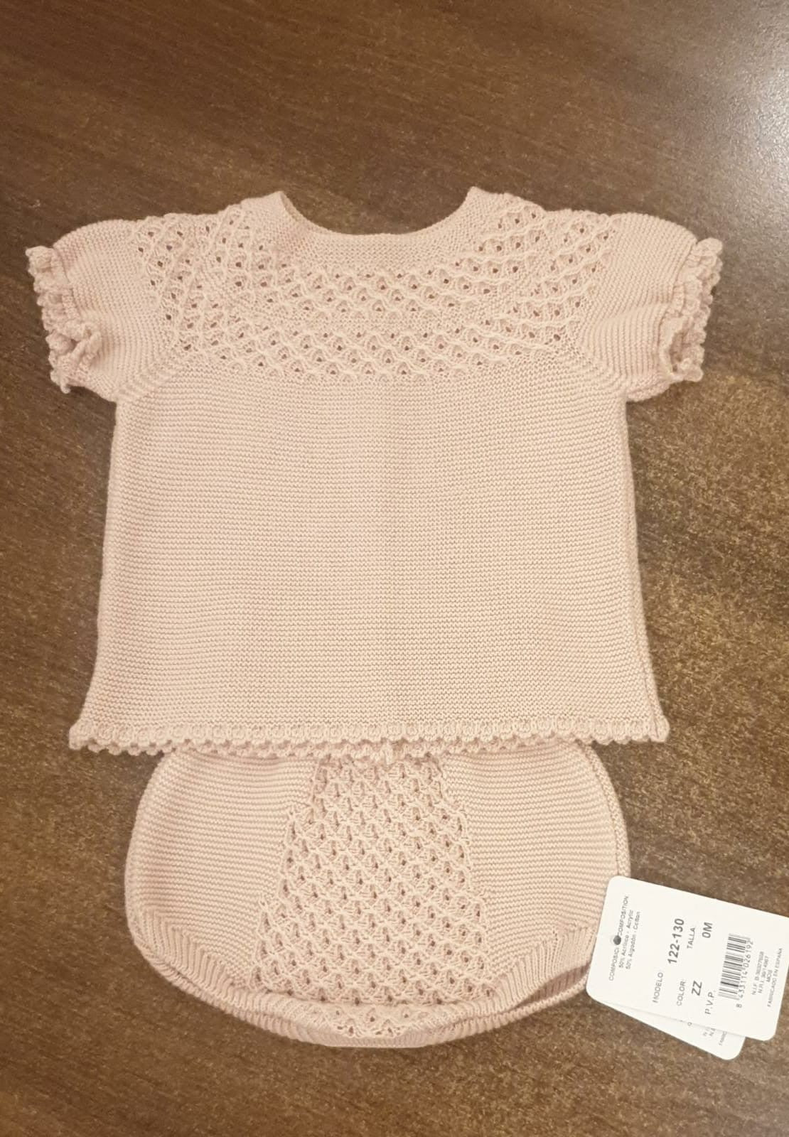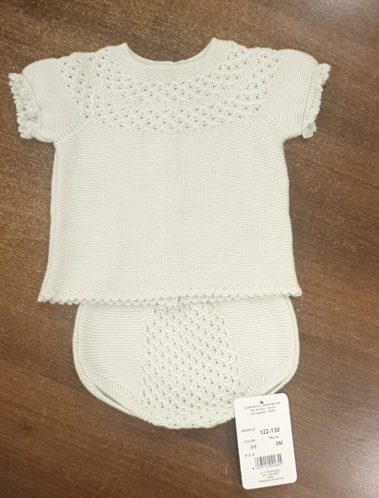 Conjunto de punto de hilo para bebé 2 piezas para primera puesta. Ideal para verano.