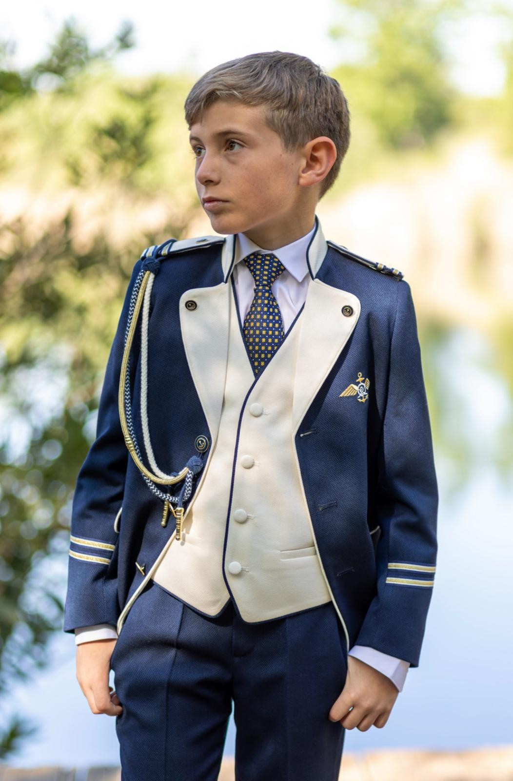 Un conjunto elegante y sofisticado para el día más especial de tu pequeño. Este traje de comunión, perteneciente a la exclusiva colección Eslora, combina tradición y modernidad.