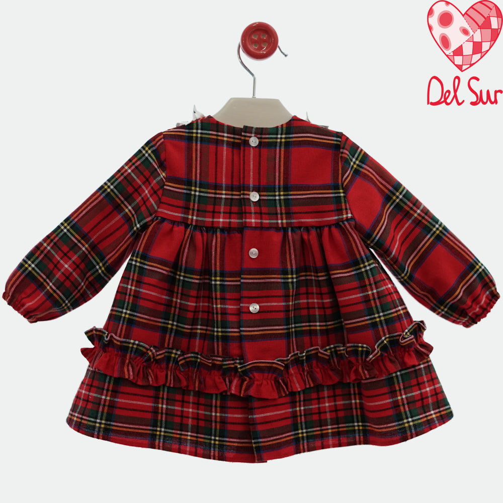 Detalle volanteen los puños, con dos lazos de terciopelo rojo en el frontal.