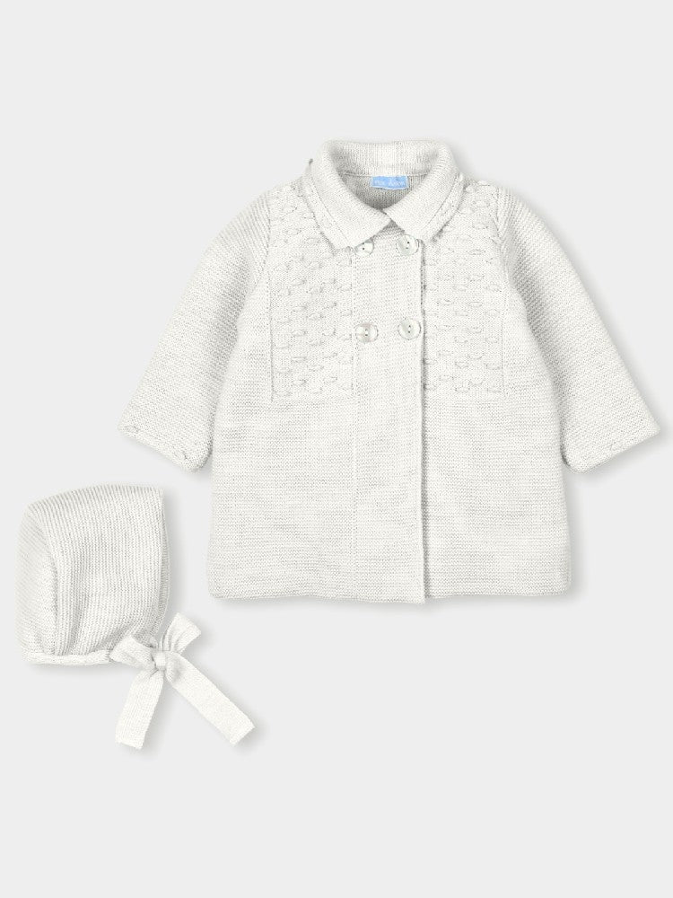 Este abrigo de punto para bebé, diseñado especialmente para el invierno, ofrece calidez y comodidad en cada uso. Su cuello decorado aporta un toque elegante y delicado, mientras que la capota confeccionada en el mismo punto que el abrigo garantiza una protección completa contra el frío. Los botones de nácar, además de su resistencia, añaden un detalle sofisticado. Fabricado en España con materiales seleccionados cuidadosamente, este abrigo asegura calidad y durabilidad, ideal para mantener a tu bebé abrigado en los días más fríos.