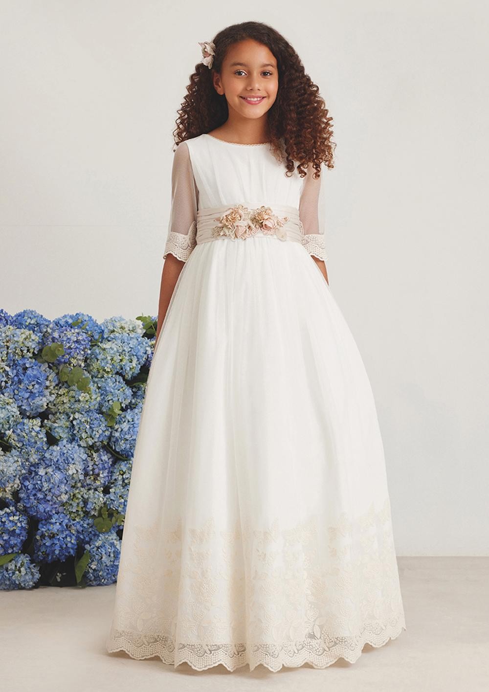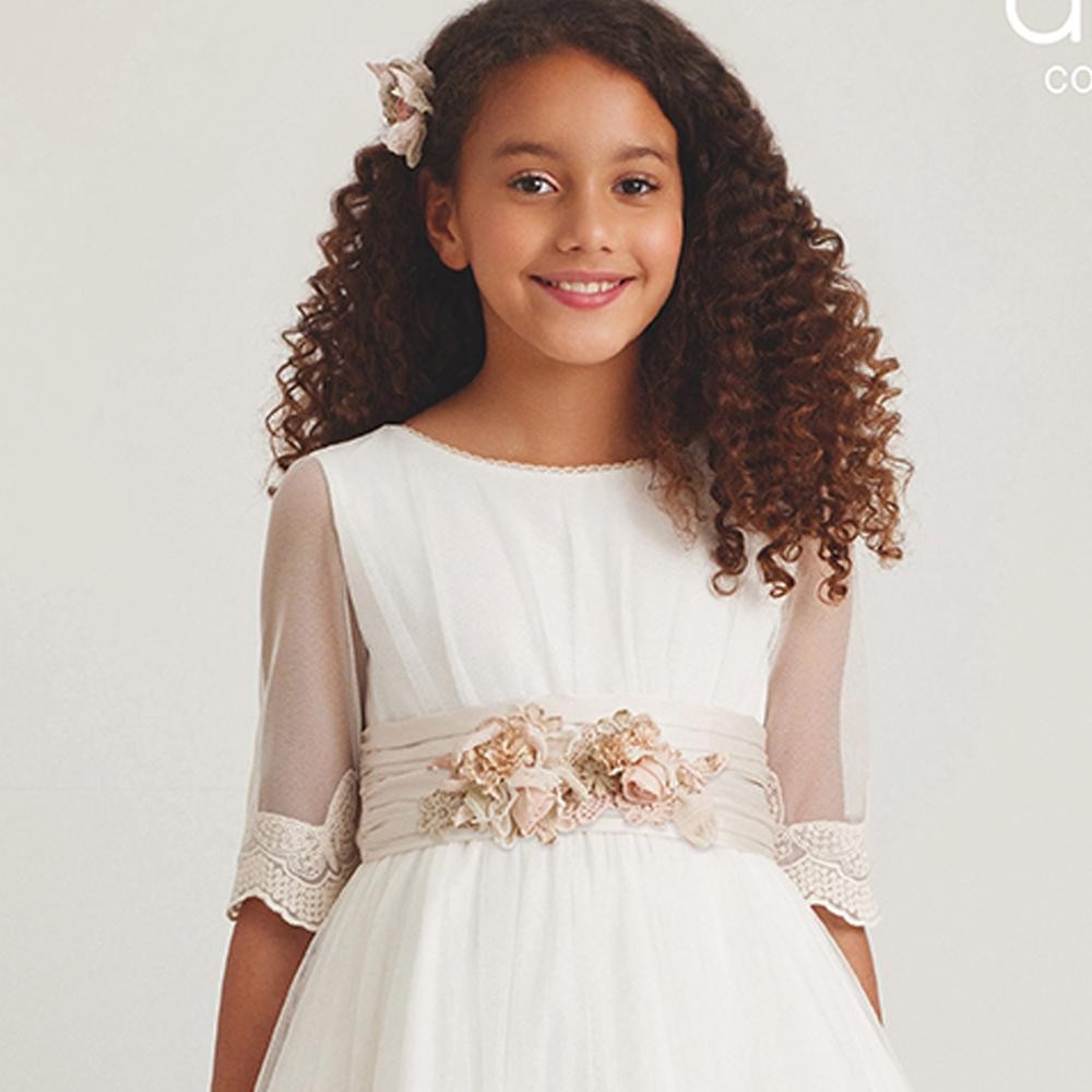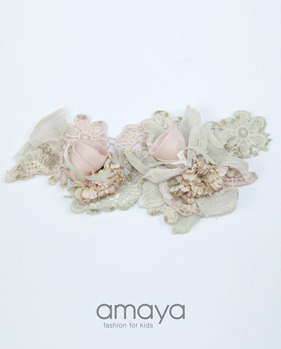 Adorno floral para la cintura a juego con el vestido 587015 de Amaya, es perfecto tanto para ceremonia como para Comunión.