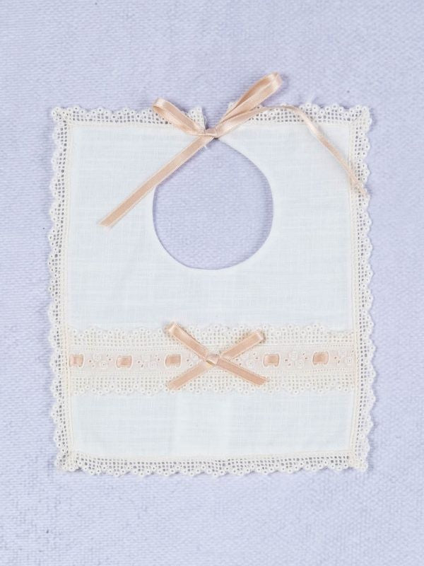Este babero destaca por sus detalles finos y elegantes que sólo se consiguen cuando se sigue un proceso de confección artesanal.