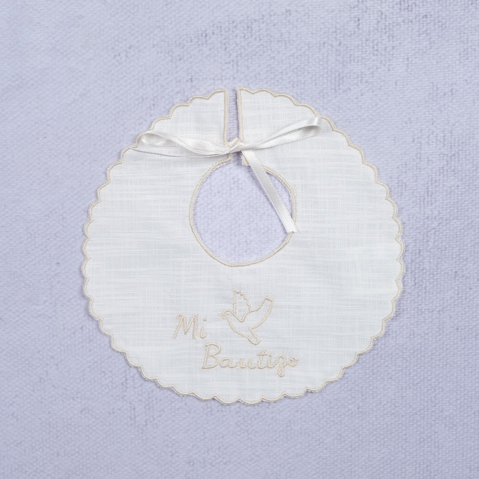 Este babero destaca por sus detalles finos y elegantes que sólo se consiguen cuando se sigue un proceso de confección artesanal.