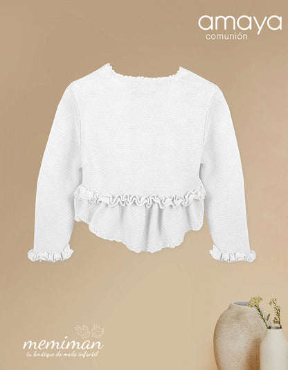 Chaqueta de punto para niña de la nueva colección de comunión de Amaya Fashion for Kids que es perfecta para acompañar a los vestidos de comunión y ceremonia.