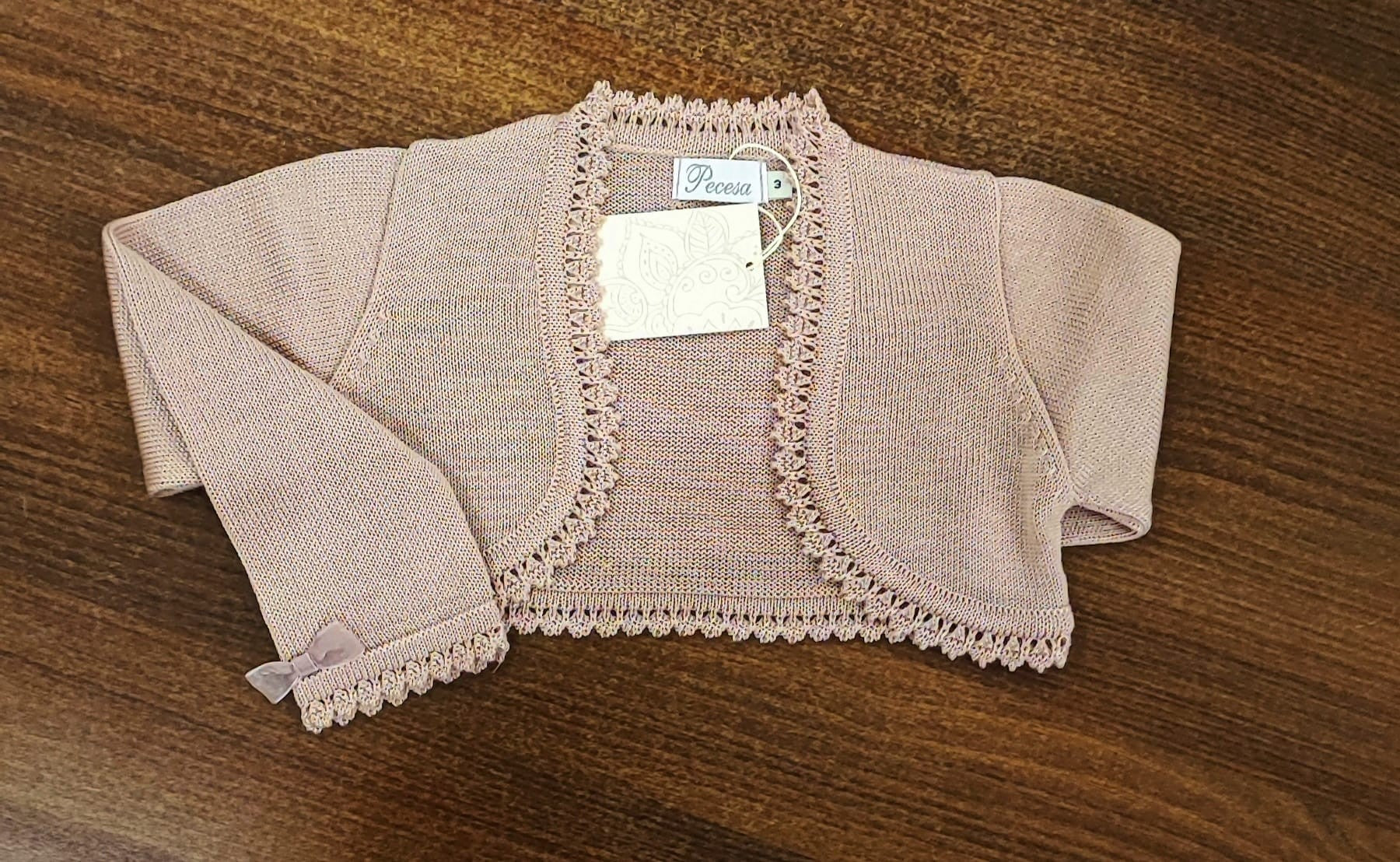Chaqueta de punto tipo bolero sin botones ideal para combinar con vestidos de ceremonia o comunión.
