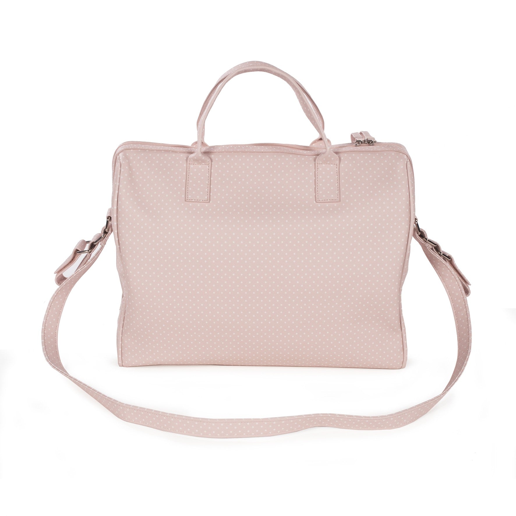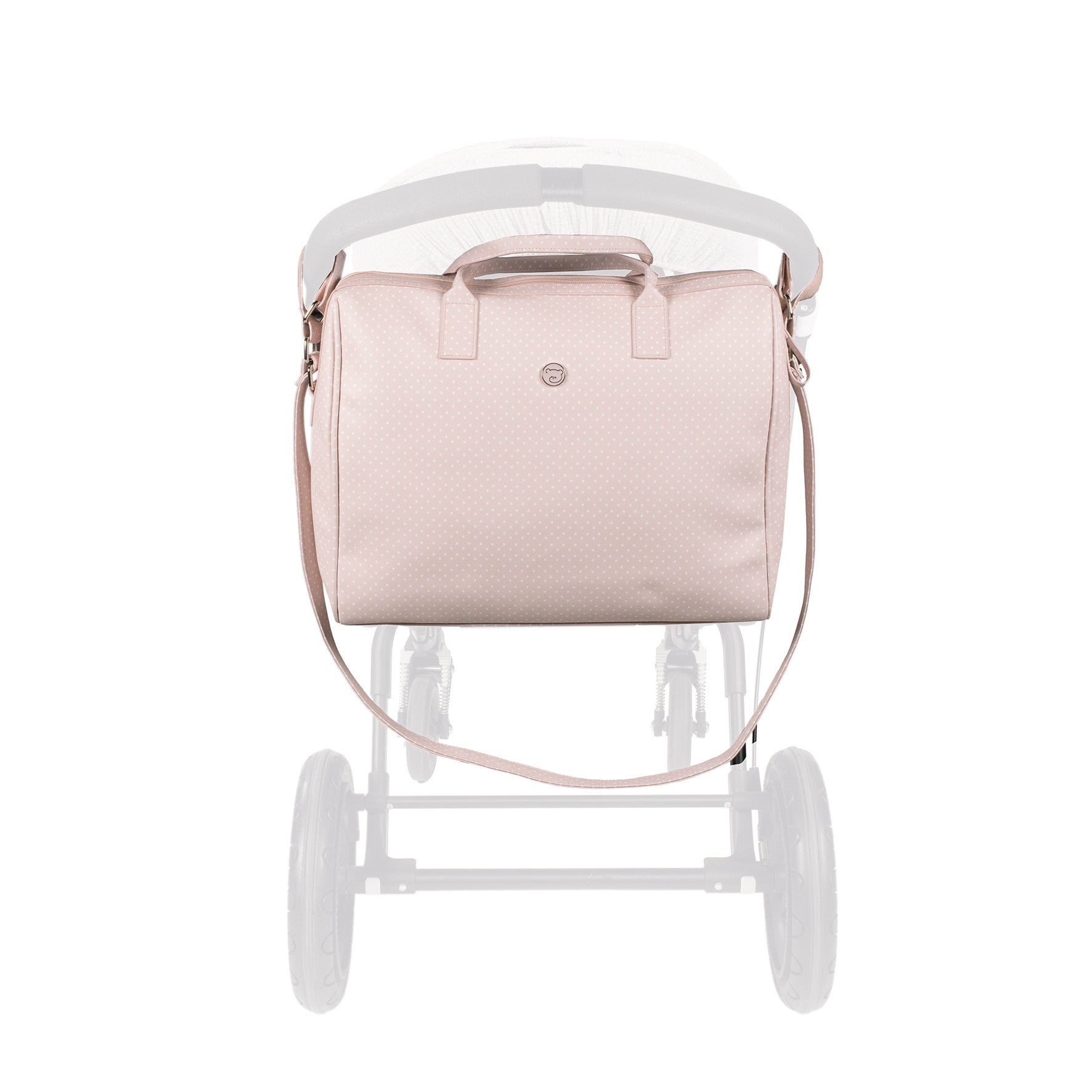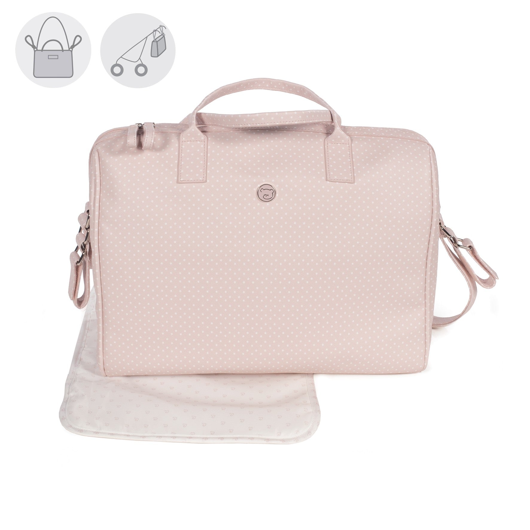 De gran capacidad para llevar todo lo que necesite tu bebé. Incluye asa larga para colgar en el cochecito y asas de mano. Forro interior con bolsillos. Incluye cambiador.