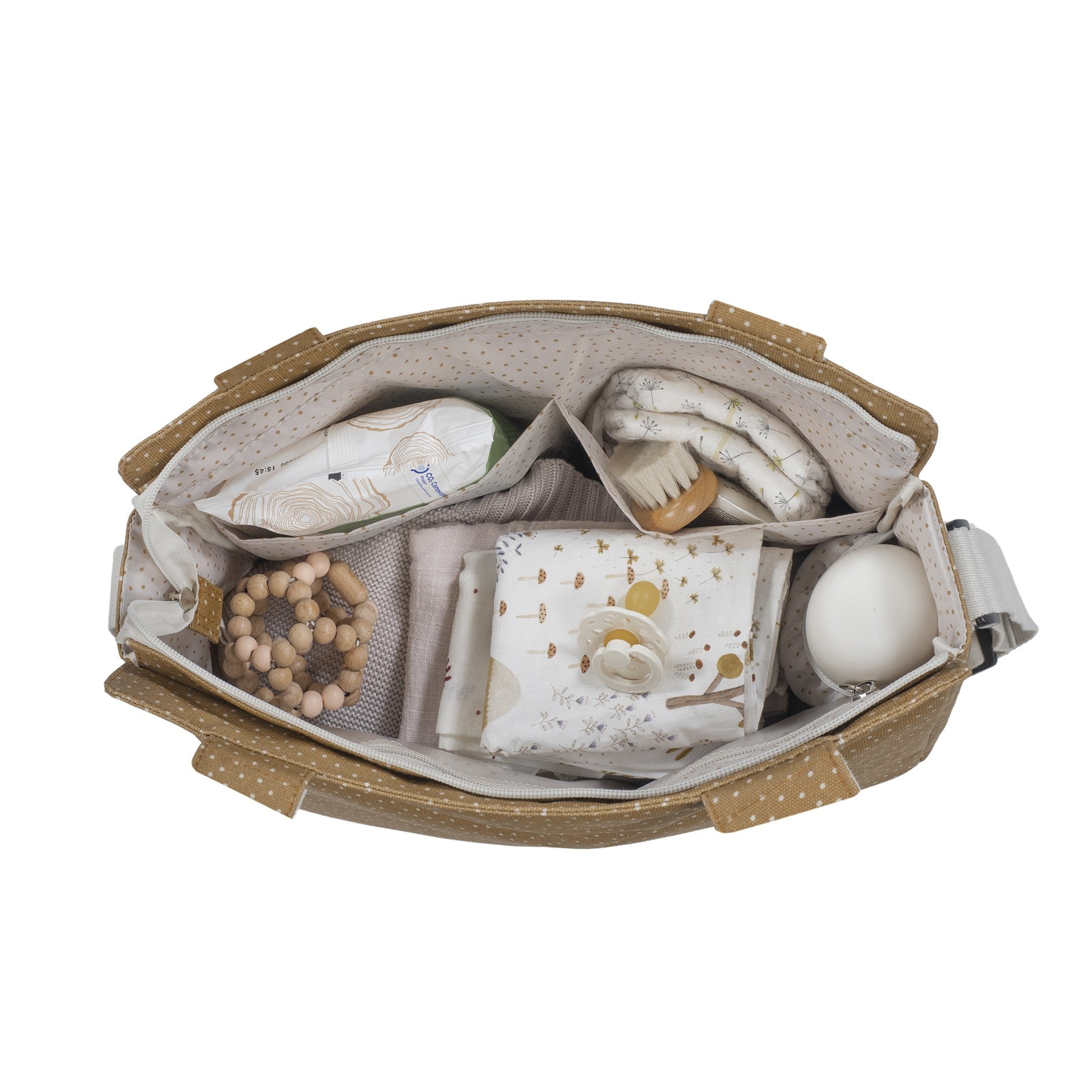 Bolso cambiador Poppy topitos para silla de paseo que incluye cambiador para bebe.