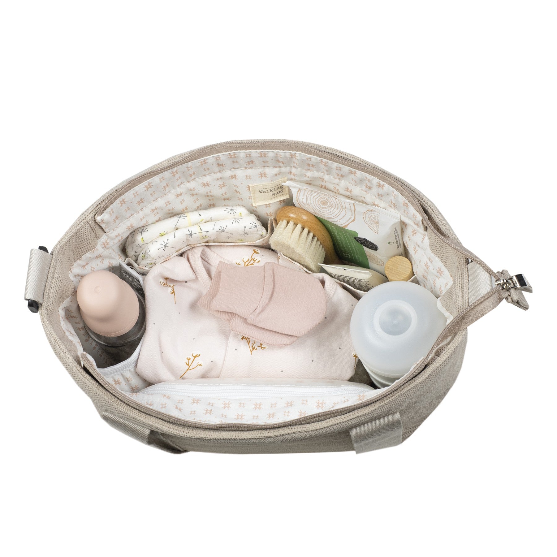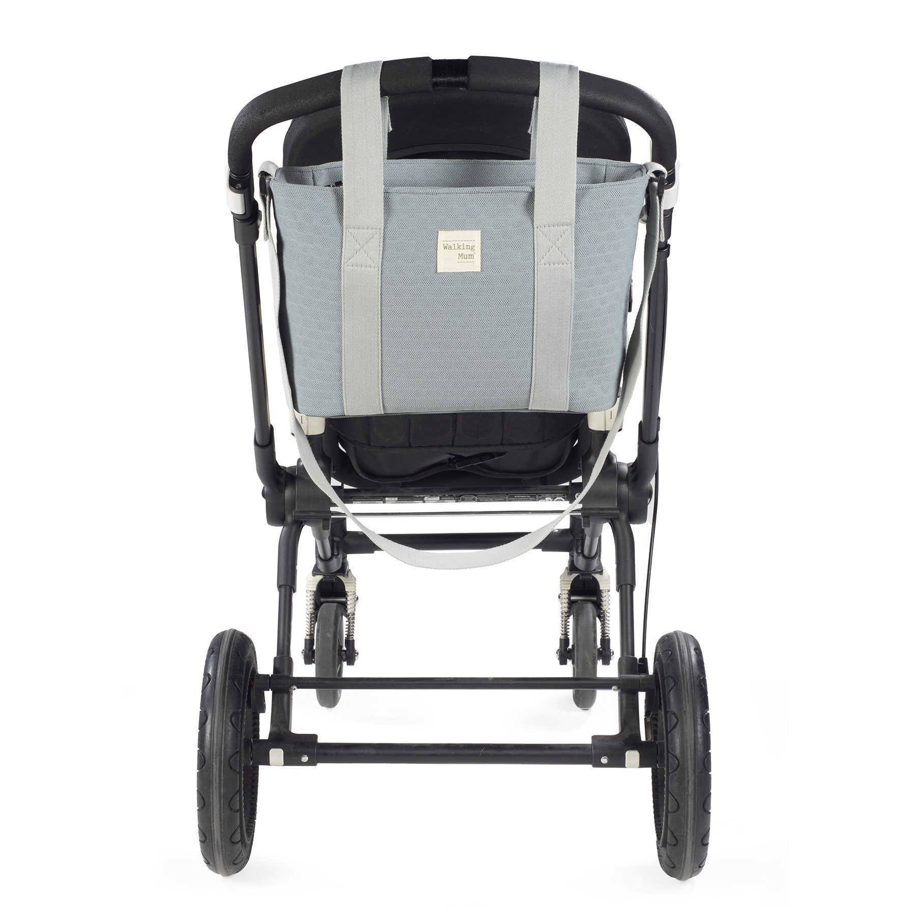 Incorpora asas cortas con las que puedes fijarla a cualquier modelo de silla de paseo y asa larga para que te la puedas colgar en el hombro. Gran calidad y mucho estilo.