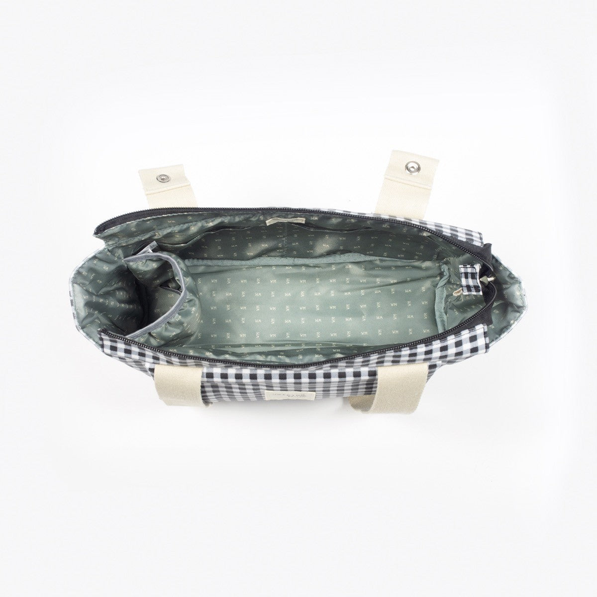 Incorpora asas cortas con las que puedes fijarla a cualquier modelo de silla de paseo. Gran calidad y mucho estilo.