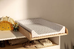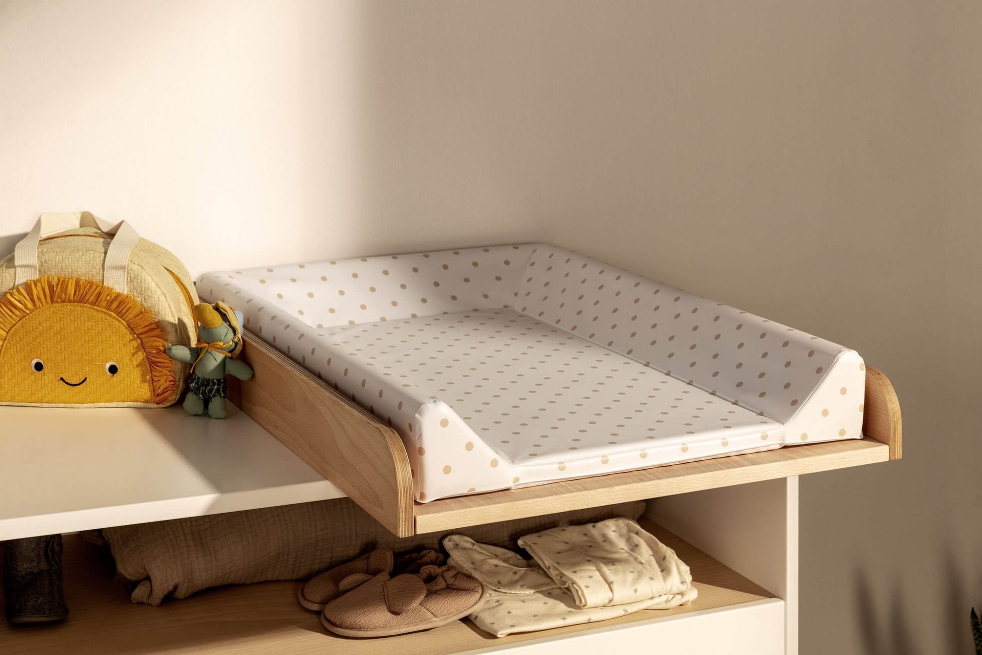 El nuevo cambiador de Micuna es práctico, seguro y cómodo para que el bebé se sienta confortable a la hora del cambio de pañal o después del baño. Lleva incorporado un tablero de madera que se sujeta a la cómoda de una forma muy sencilla. Podrás encontrarlo en color madera con tapizado Rabbits o Lunares Beige, o en blanco con tapizado Rabbits, Estrellas Gris o Lunares Beige. ¡Escoge la combinación que más te guste!