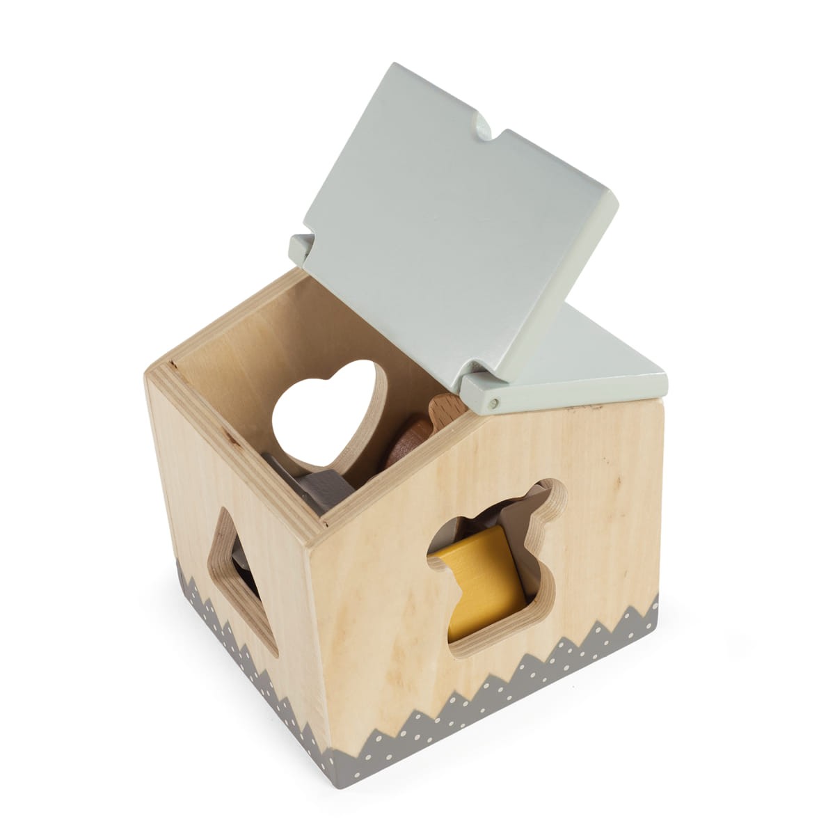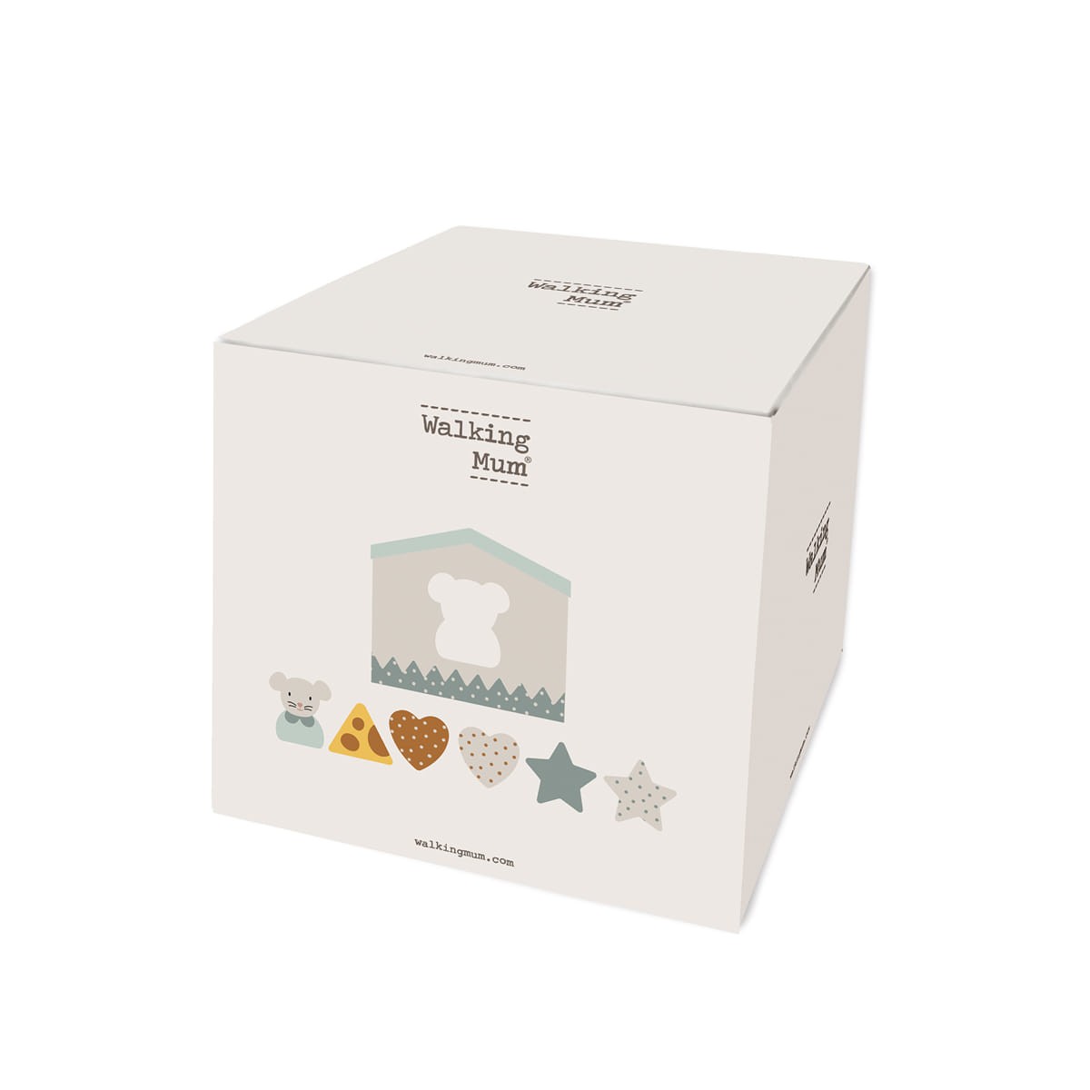 Encantadora casita de madera con formas geométricas de Walking Mum, diseñada especialmente para estimular la curiosidad y el desarrollo temprano de los bebés.
