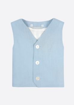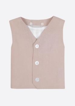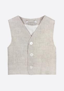 Chaleco de niño en lino. Cierre por delante mediante tres botones de nácar.