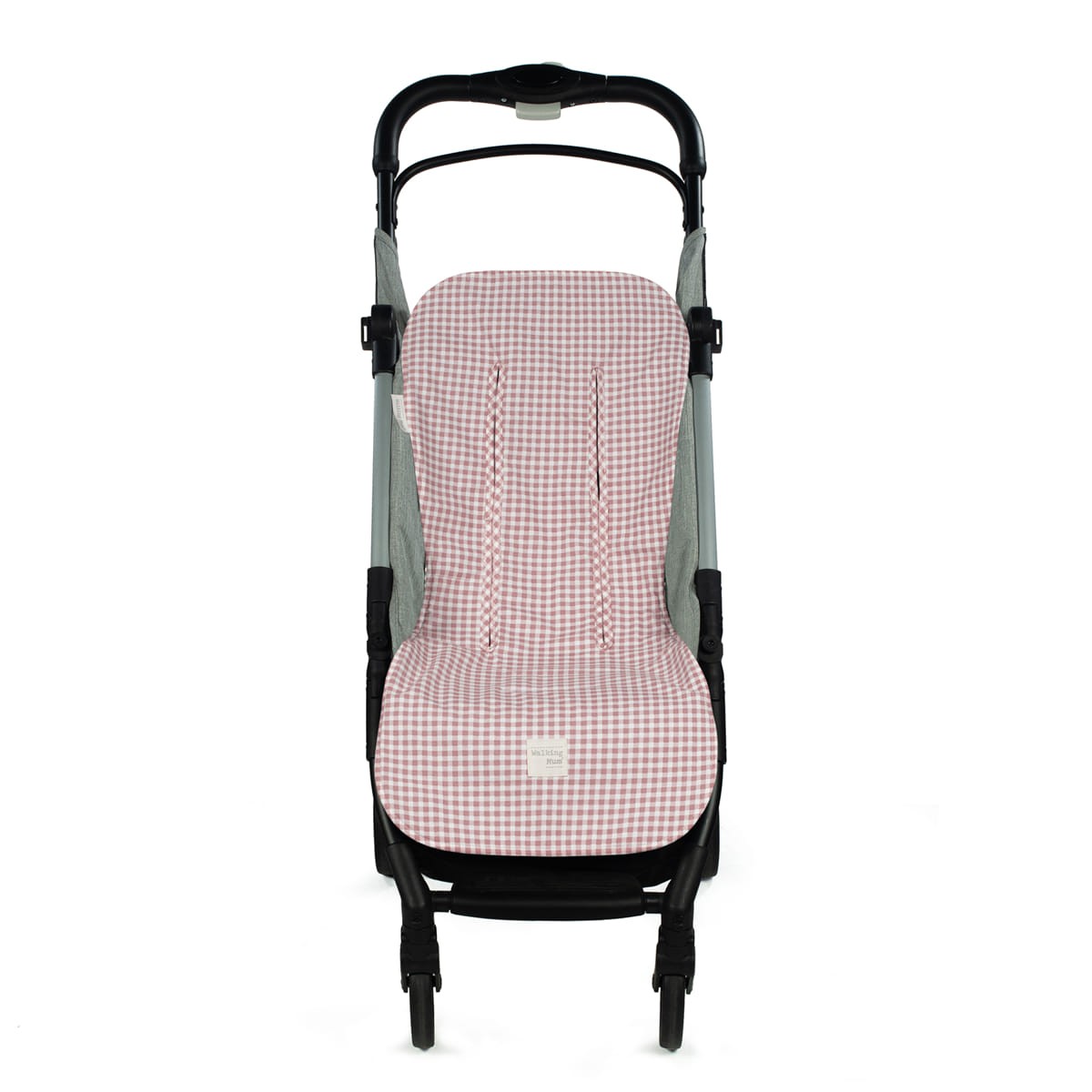 La colchoneta para silla de paseo I love Vichy es el forro ideal para cubrir el asiento de tu bebé durante el verano, protegiendo su piel de las rozaduras e irritaciones del calor y además mantienes el tapizado original como nuevo.