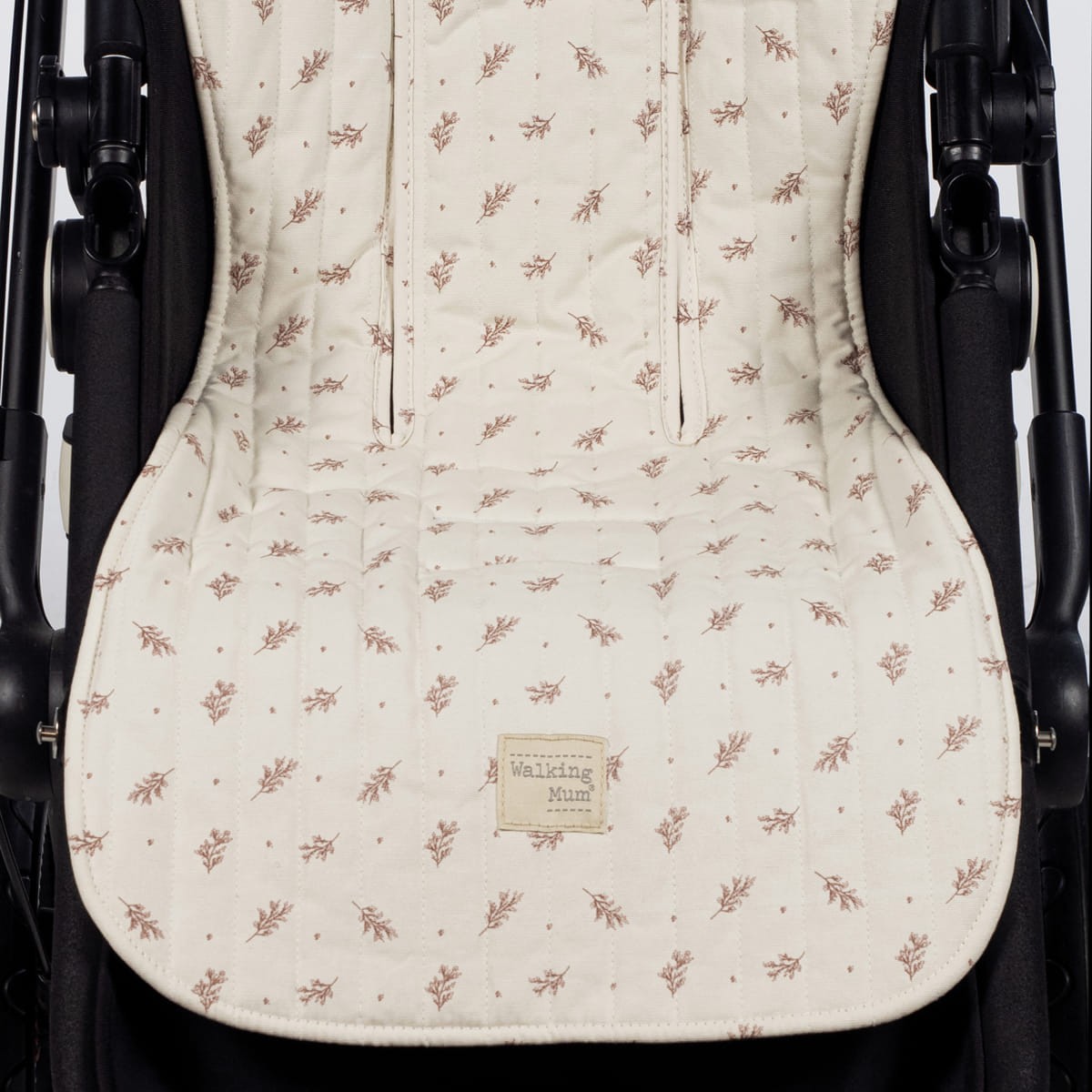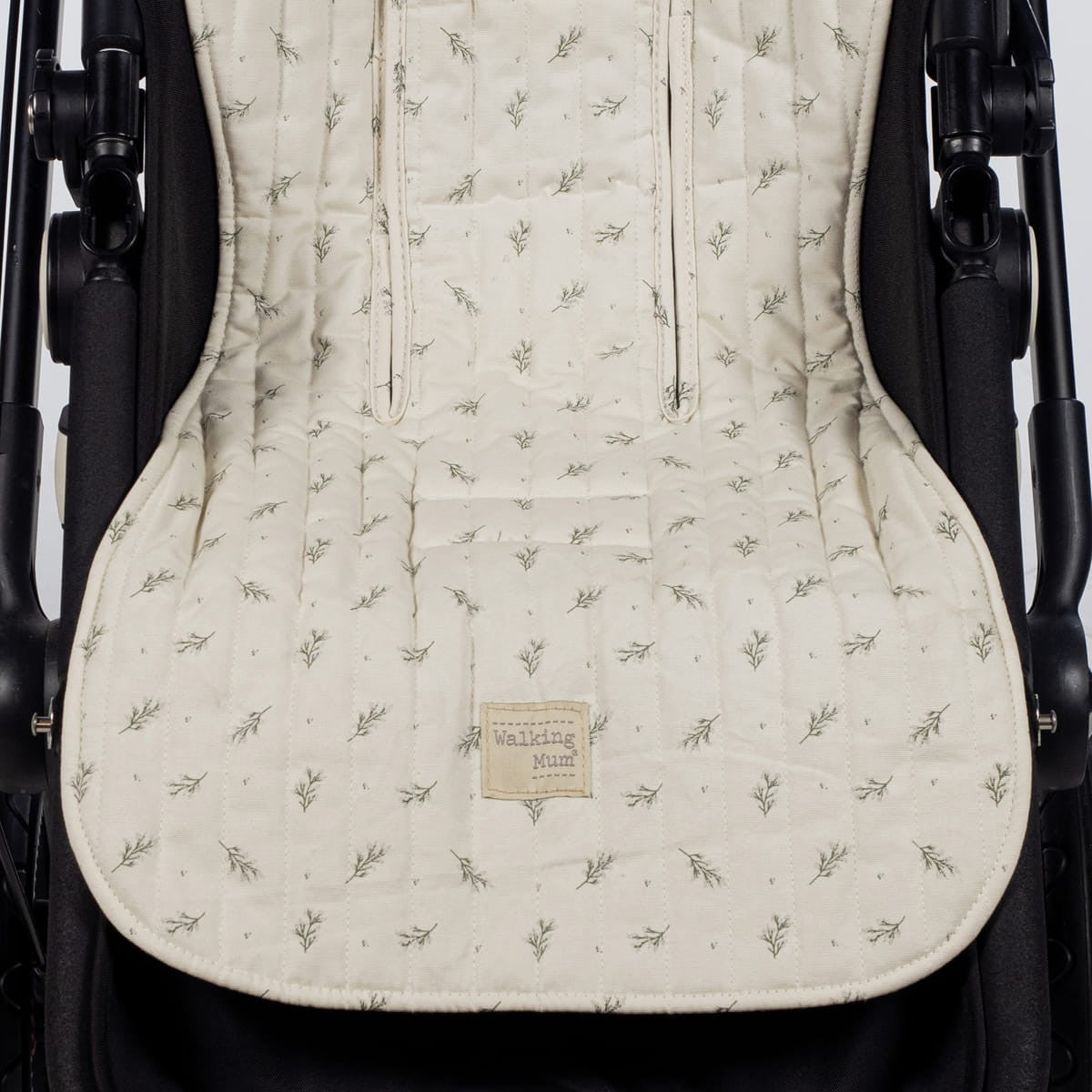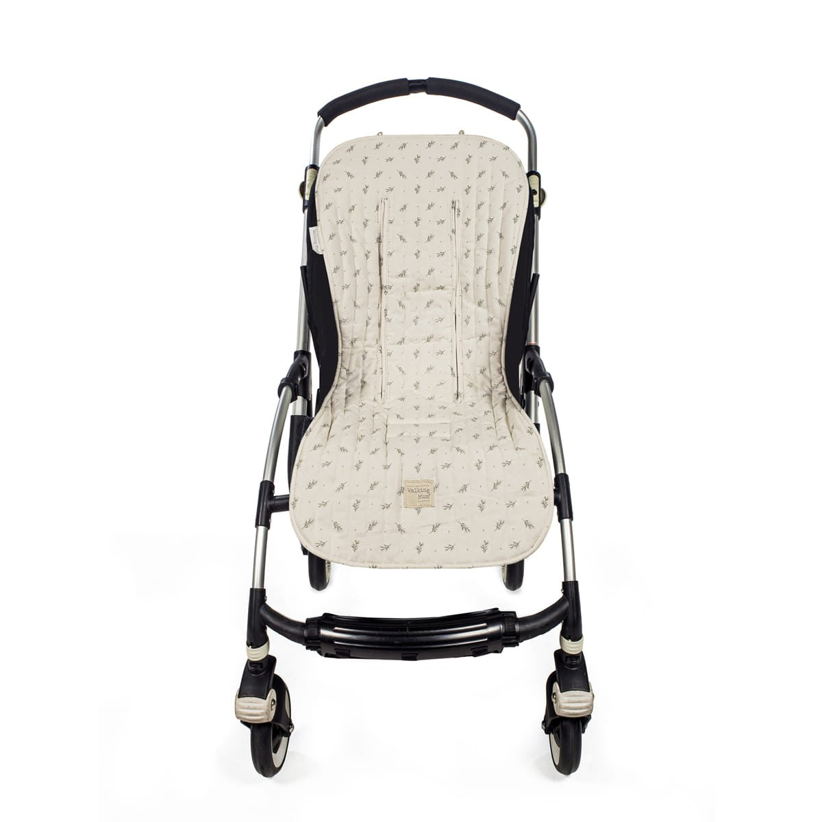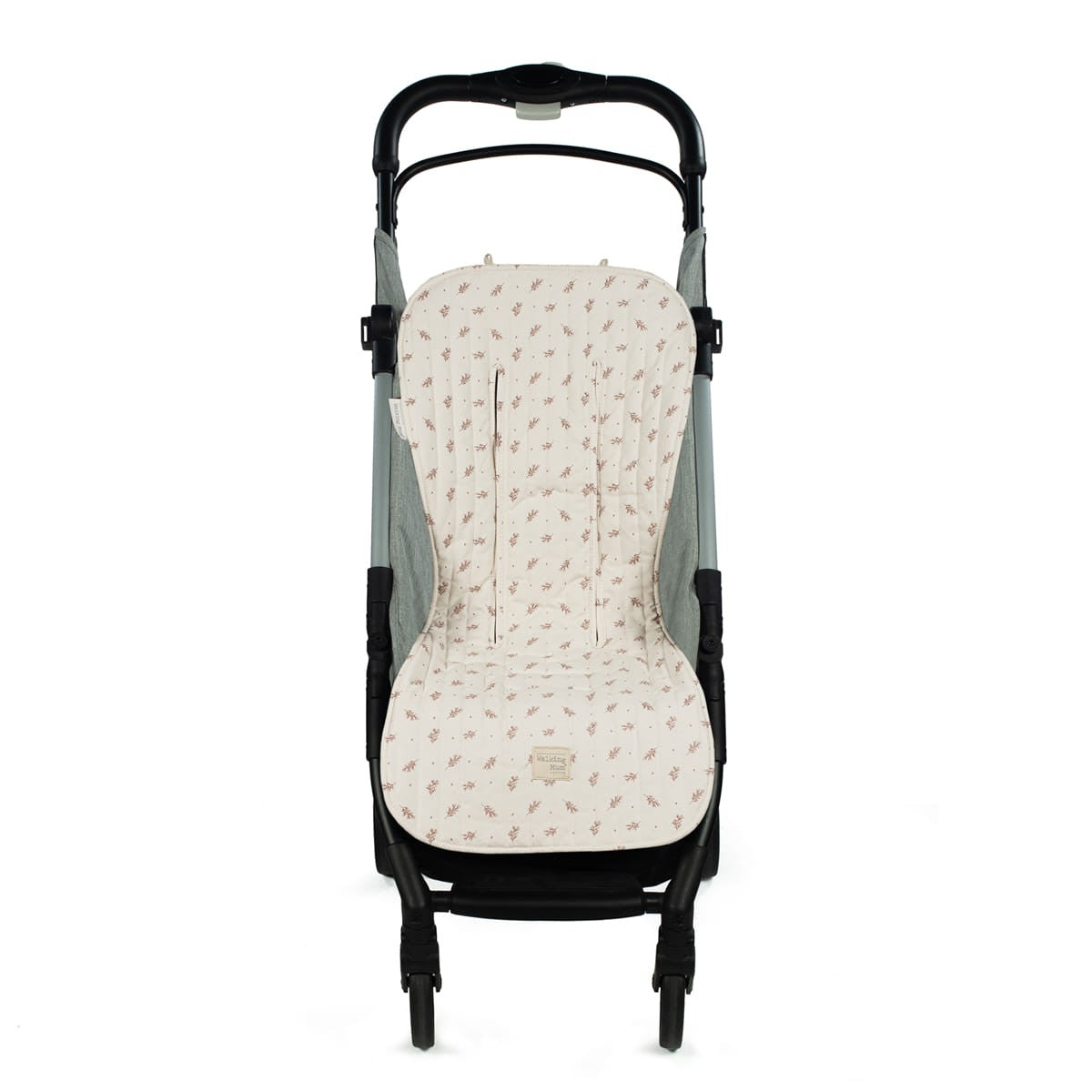 La colchoneta para silla de paseo Mimosa está fabricado con un tejido exterior 100% algodón reciclado es el forro ideal para cubrir el asiento de tu bebé durante el verano, protegiendo su piel de las rozaduras e irritaciones del calor y además mantienes el tapizado original como nuevo.