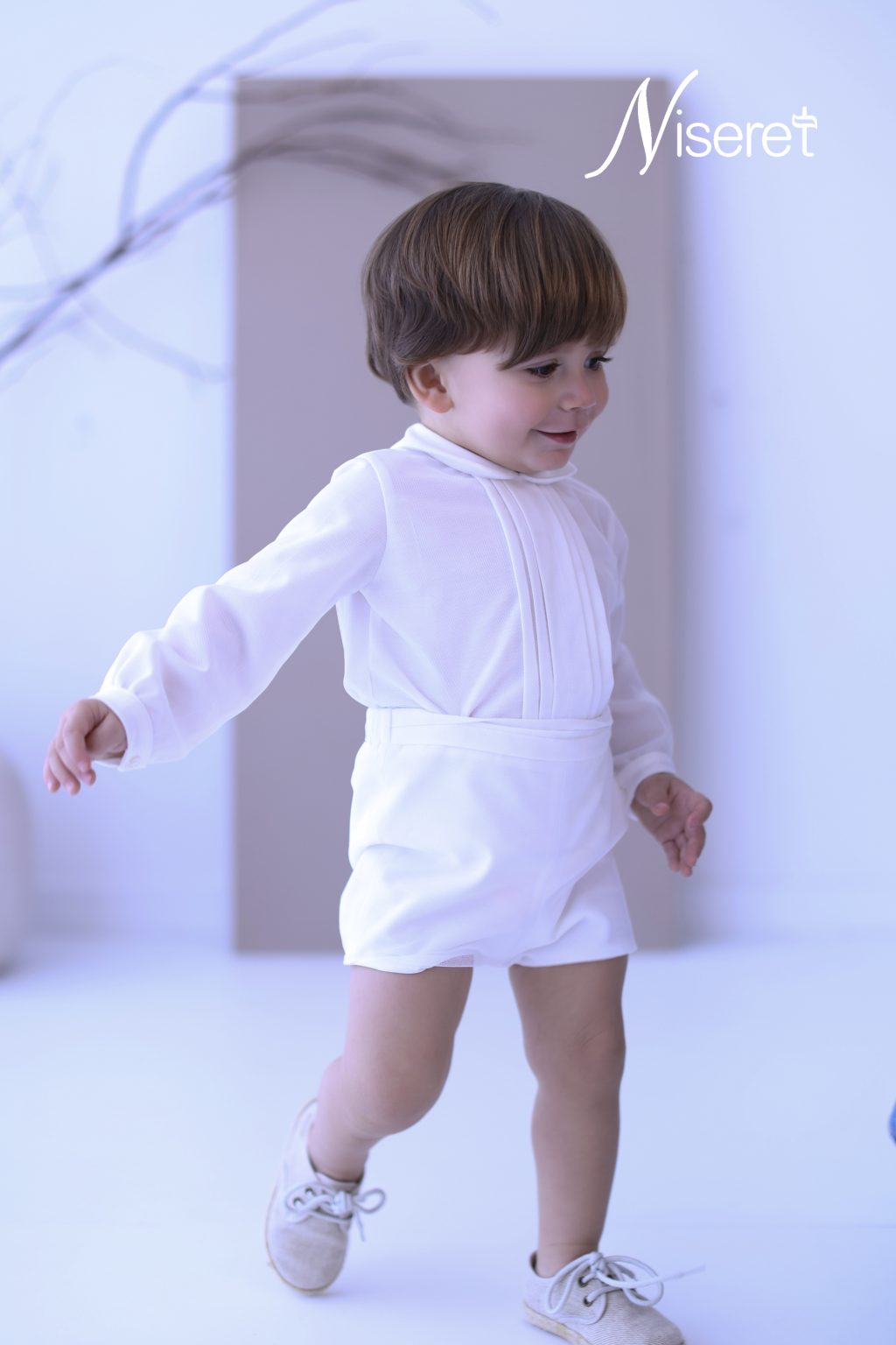 Este elegante conjunto de bebé de la colección Niseret está diseñado para ocasiones especiales como bautizos y ceremonias, ofreciendo sofisticación y comodidad. Confeccionado en delicado tul, incluye una camisa de manga larga con finos plisados centrales que aportan un aire clásico y refinado. El pantalón corto, disponible en tonos empolvados, está cuidadosamente forrado para garantizar suavidad y confort durante todo el día. Perfecto para ceremonias de invierno, este conjunto combina estilo y funcionalidad. Fabricado en España, refleja un acabado de alta calidad ideal para vestir al bebé con distinción en momentos memorables.