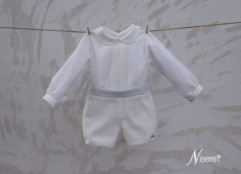Este elegante conjunto para bebé está compuesto por una camisa y un pantalón, perfectamente diseñado para ocasiones especiales como bautizos y ceremonias. La camisa, confeccionada en suave organza, destaca por un delicado encaje bordado que adorna el centro, aportando un toque de sofisticación y detalle artesanal. El pantalón, también de organza, incluye una cinturilla en color que añade un contraste sutil, realzando la personalidad del conjunto sin romper la armonía de sus tonos naturales. Disponible en varios colores cuidadosamente seleccionados, este conjunto ofrece versatilidad para adaptarse a diferentes gustos y eventos. Fabricado en España con materiales de alta calidad, garantiza comodidad y un acabado impecable para tu bebé en su día especial.