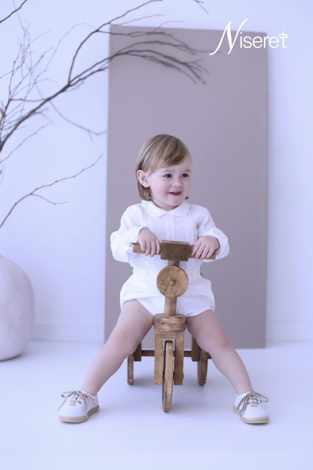 El Conjunto Bebé Niseret 5641 destaca por su diseño elegante y detallado, perfecto para bautizos y ceremonias especiales. Forma parte de la exclusiva colección Niseret y está confeccionado en organza plumeti bordado, que añade textura y delicadeza a la prenda. La combinación de camisa de manga larga y pantalón corto forrado incorpora acabados en encaje de guipur, ofreciendo un acabado artesanal que realza la sofisticación del conjunto. Su forro interno garantiza comodidad durante todo el día, mientras que el estilo clásico asegura una presencia atemporal en cualquier evento. Fabricado en España con materiales de alta calidad, este conjunto refleja tradición y cuidado en cada detalle, siendo una elección ideal para momentos inolvidables.