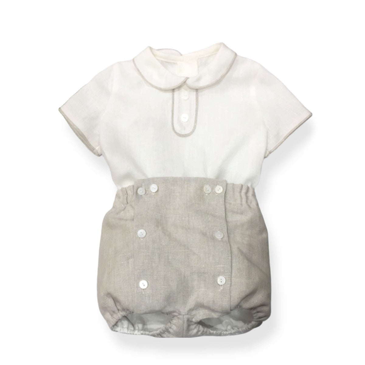 Conjunto bebé perteneciente a la colección Lilus, fabricado en lino con camisa de cuello bebé y pantalón tipo ranita.