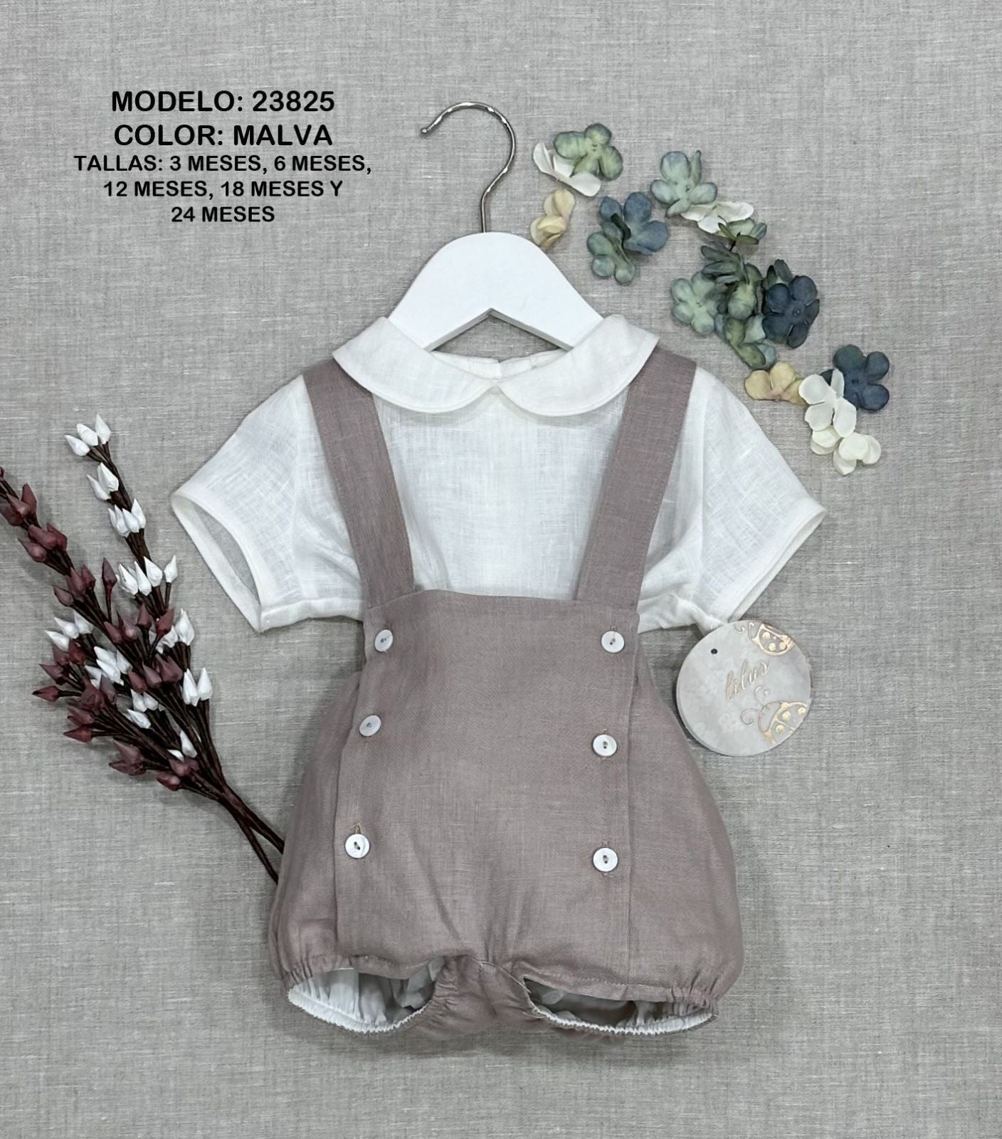 Conjunto bebé perteneciente a la colección Lilus, fabricado en lino con camisa de cuello bebé y pantalón tipo ranita.