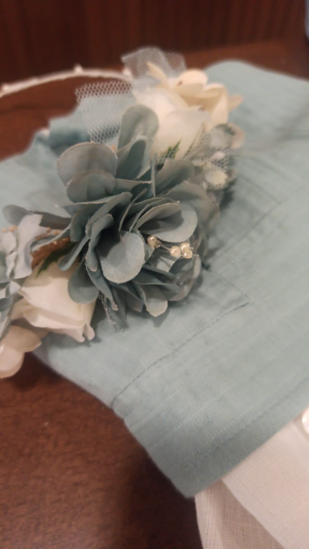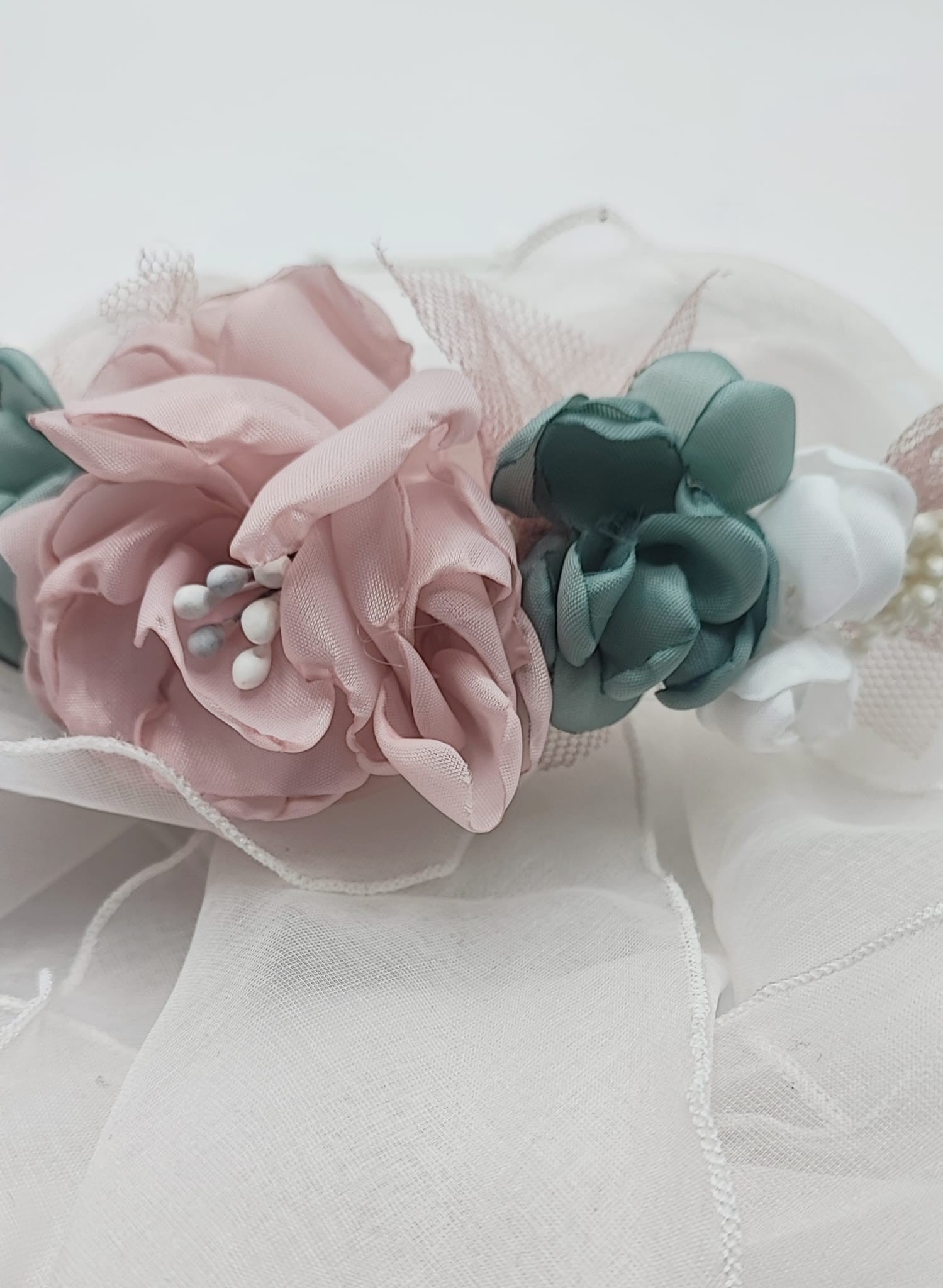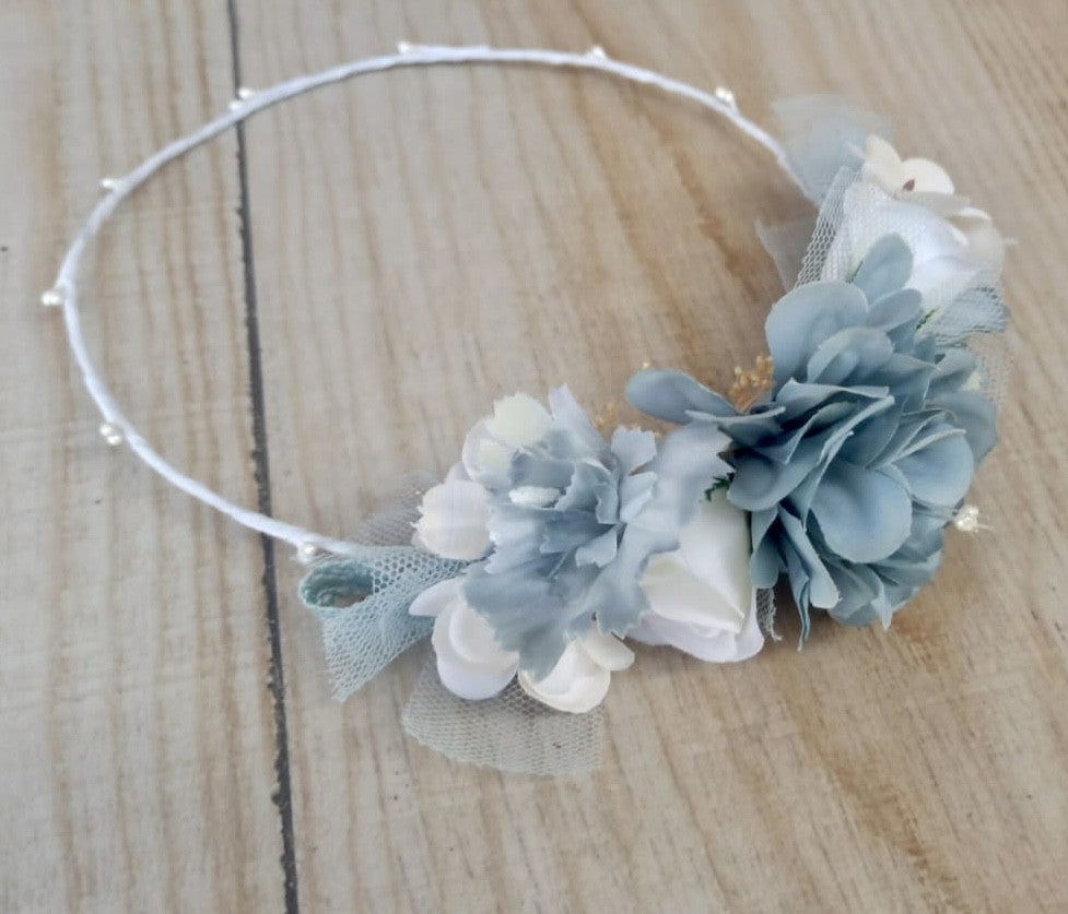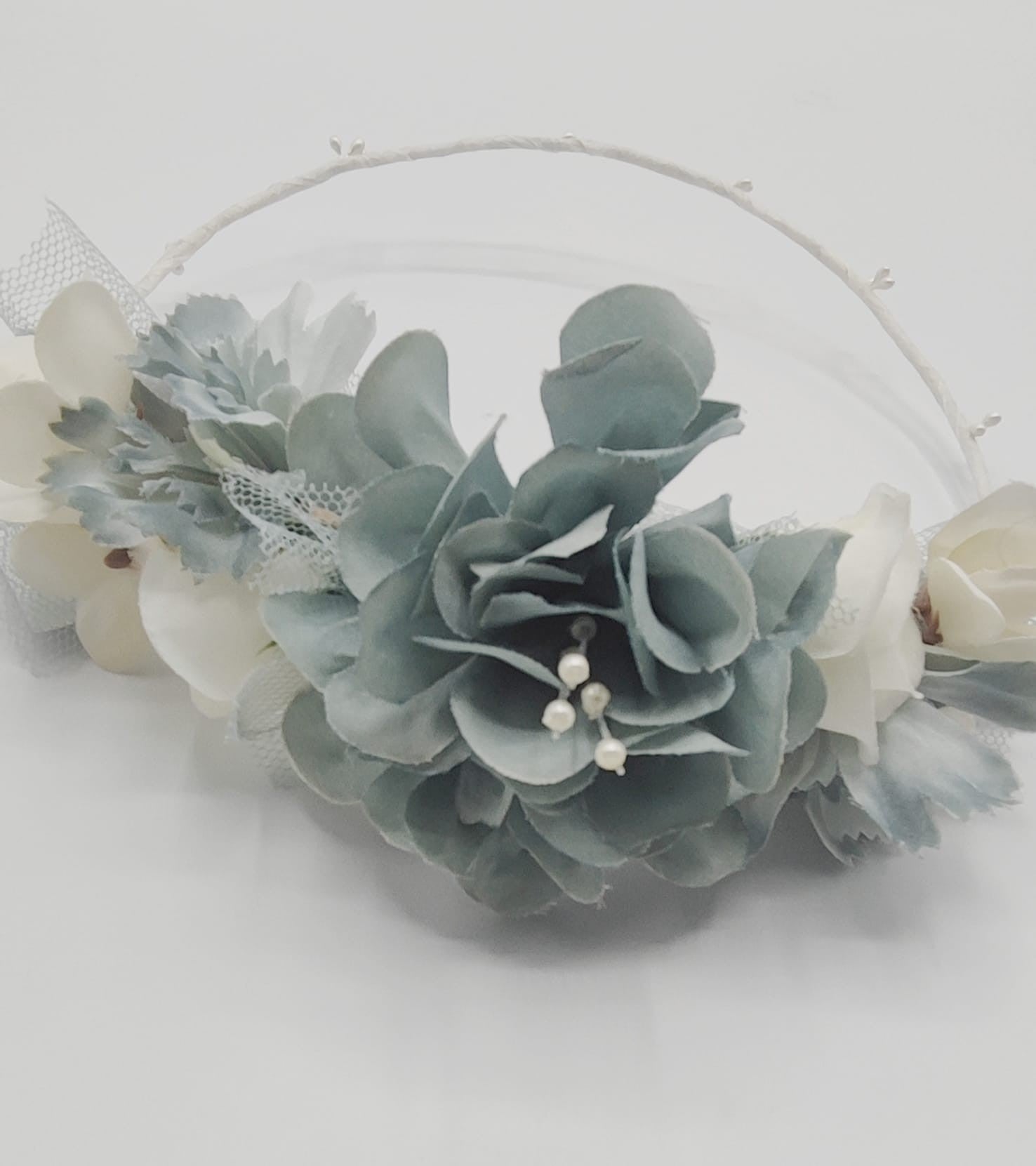 La corona floral compuesta de flores hechas a mano ideal para combinar con Vestido de comunión o arras.